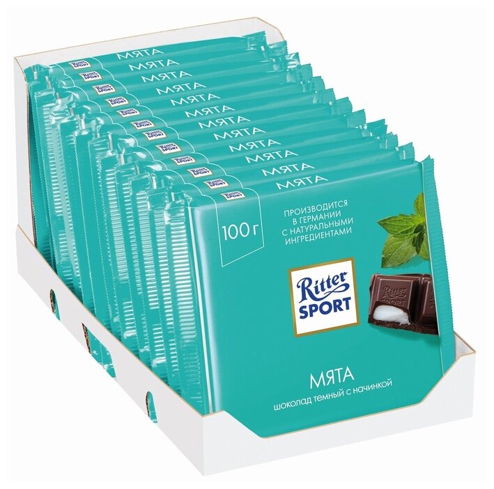 10 цен на Ritter Sport Риттер шоколад темный с начинкой Мята, 12 шт по 100 г