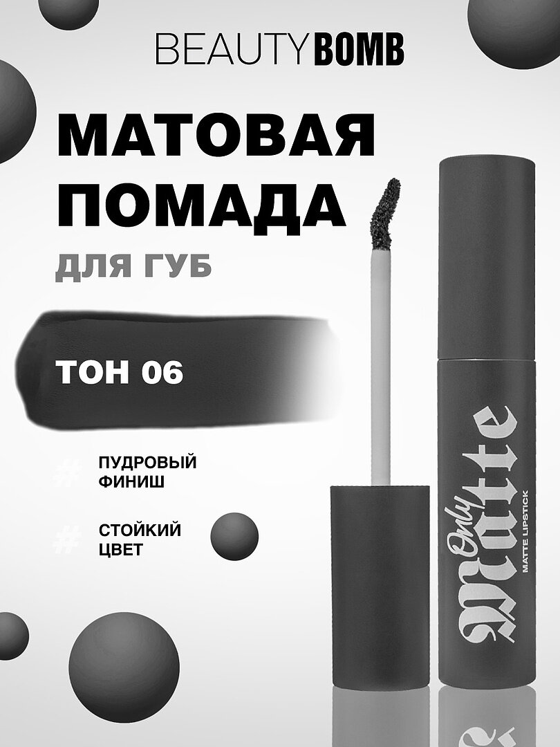 10 цен на Помада для губ Beauty Bomb жидкая матовая Only Matte, тон 06 Alyona готичный томный черный