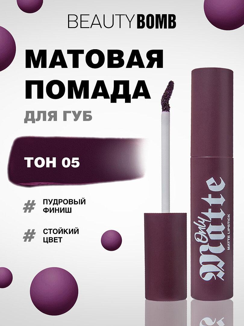 10 цен на Помада для губ Beauty Bomb жидкая матовая Only Matte, тон 05 Anna бордово-сливовый