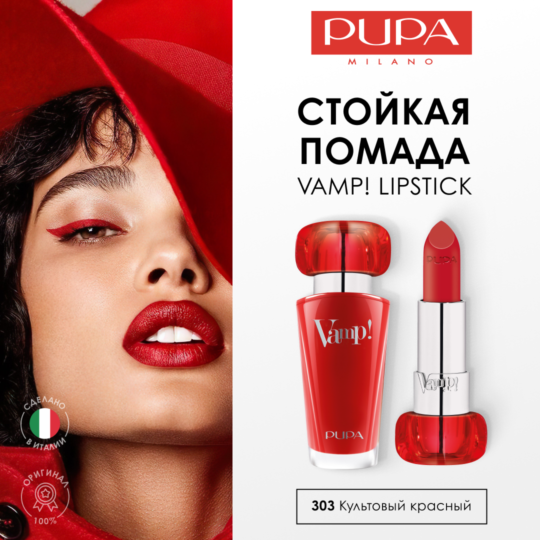 PUPA Помада для губ кремовая увлажняющая VAMP! №303 культовый красный 1 770 ₽