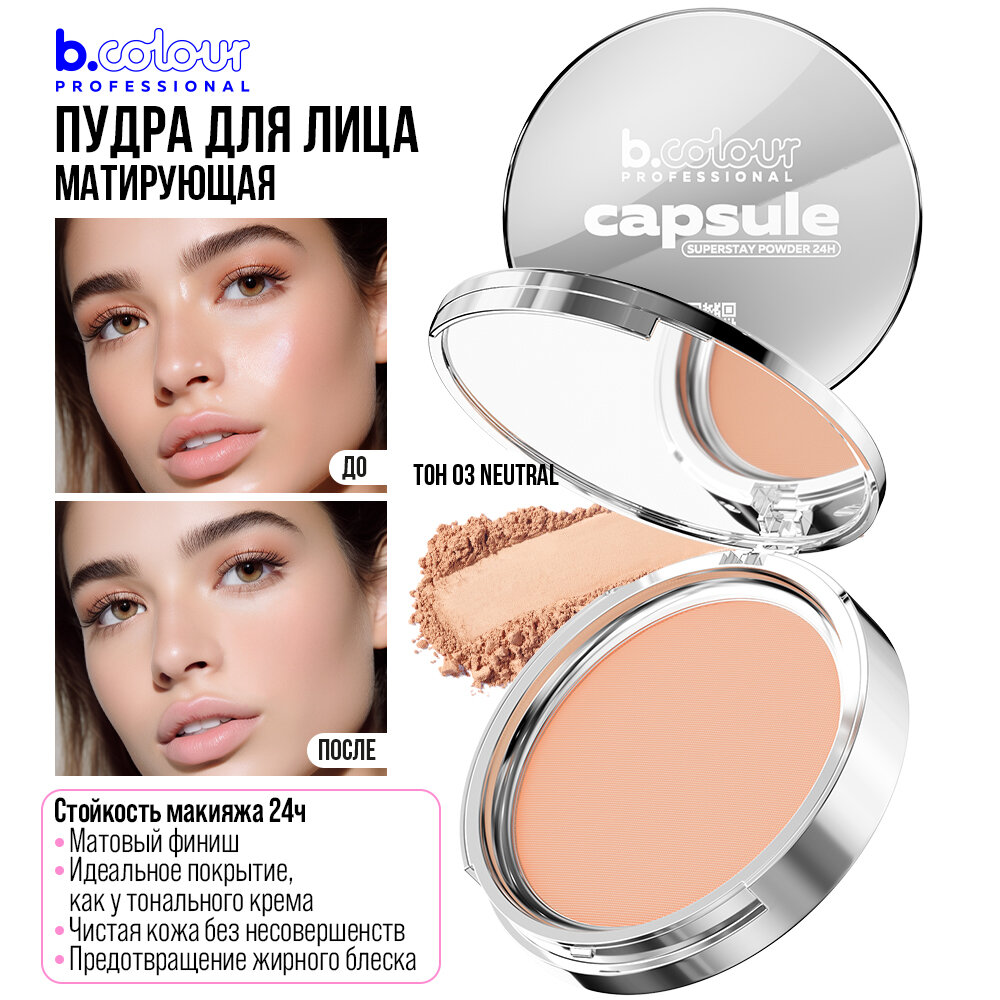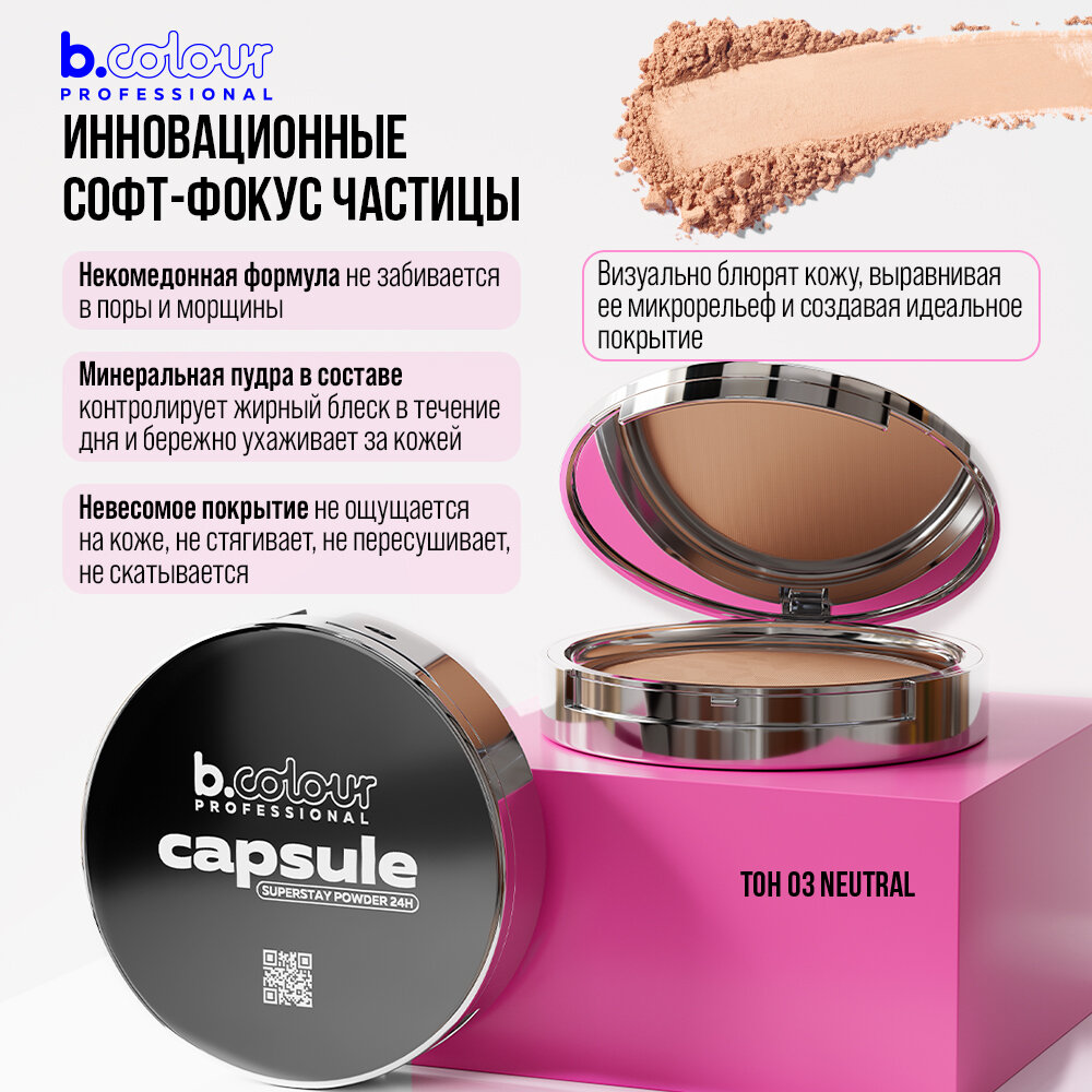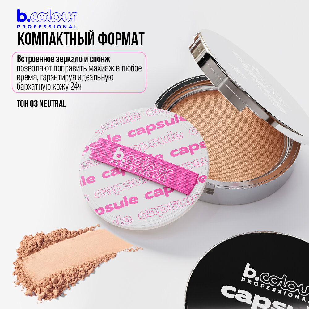 B.COLOUR PROFESSIONAL Пудра для лица матирующая фиксирующая компактная с зеркалом CAPSULE, 03 NEUTRAL 558 ₽