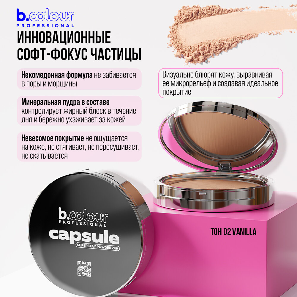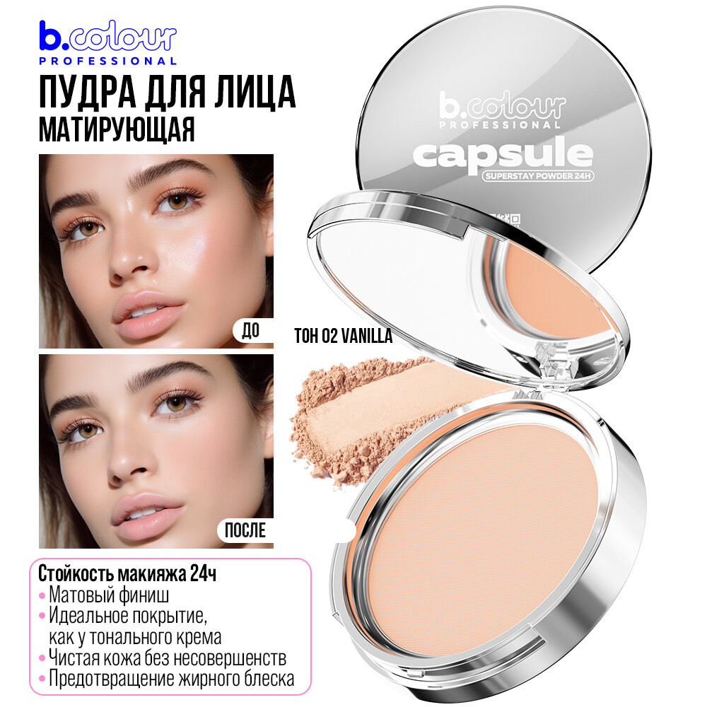 B.COLOUR PROFESSIONAL Пудра для лица матирующая компактная с зеркалом светлая CAPSULE, 02 VANILLA 560 ₽