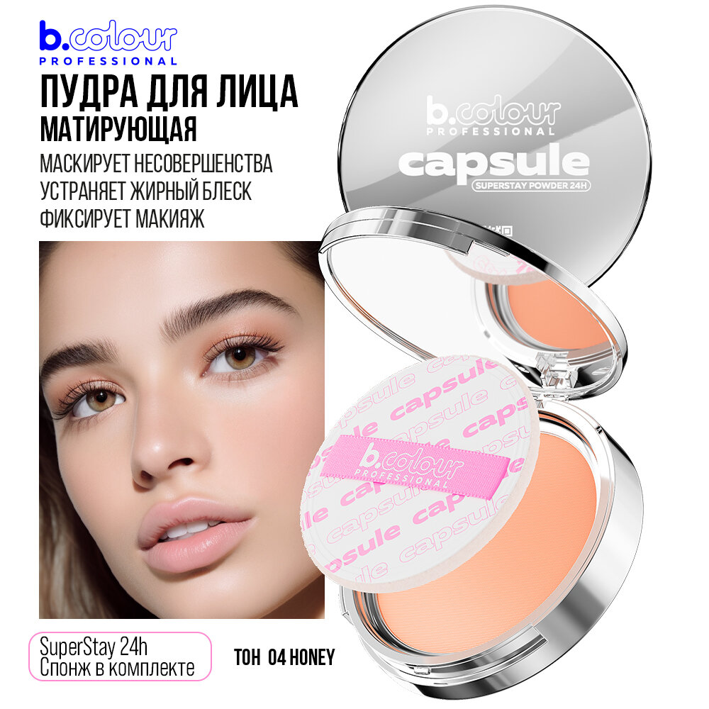 B.COLOUR PROFESSIONAL Пудра для лица матирующая фиксирующая компактная с зеркалом CAPSULE, 04 HONEY 584 ₽