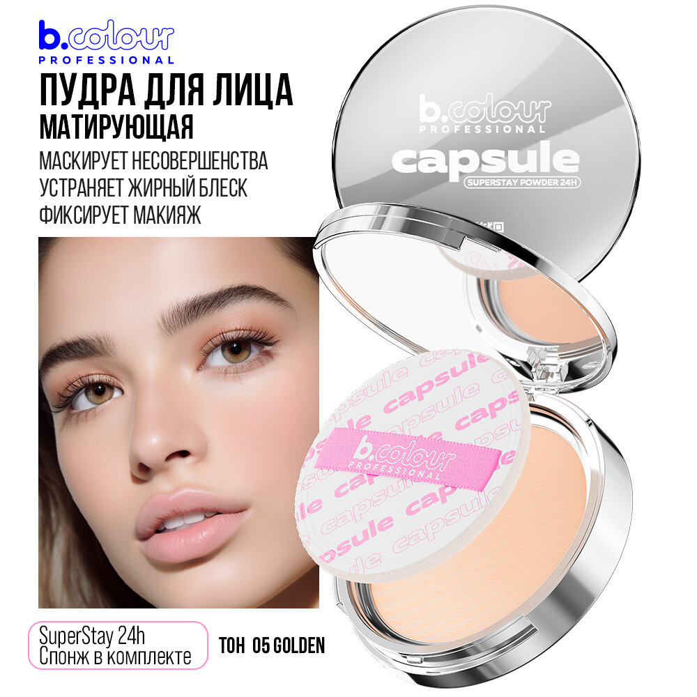 B.COLOUR PROFESSIONAL Пудра для лица матирующая фиксирующая компактная с зеркалом, CAPSULE, 05 GOLDEN 584 ₽