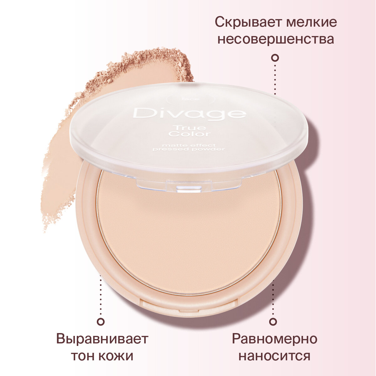 Divage Пудра для лица компактная True Color, Тон 01 fair 325 ₽