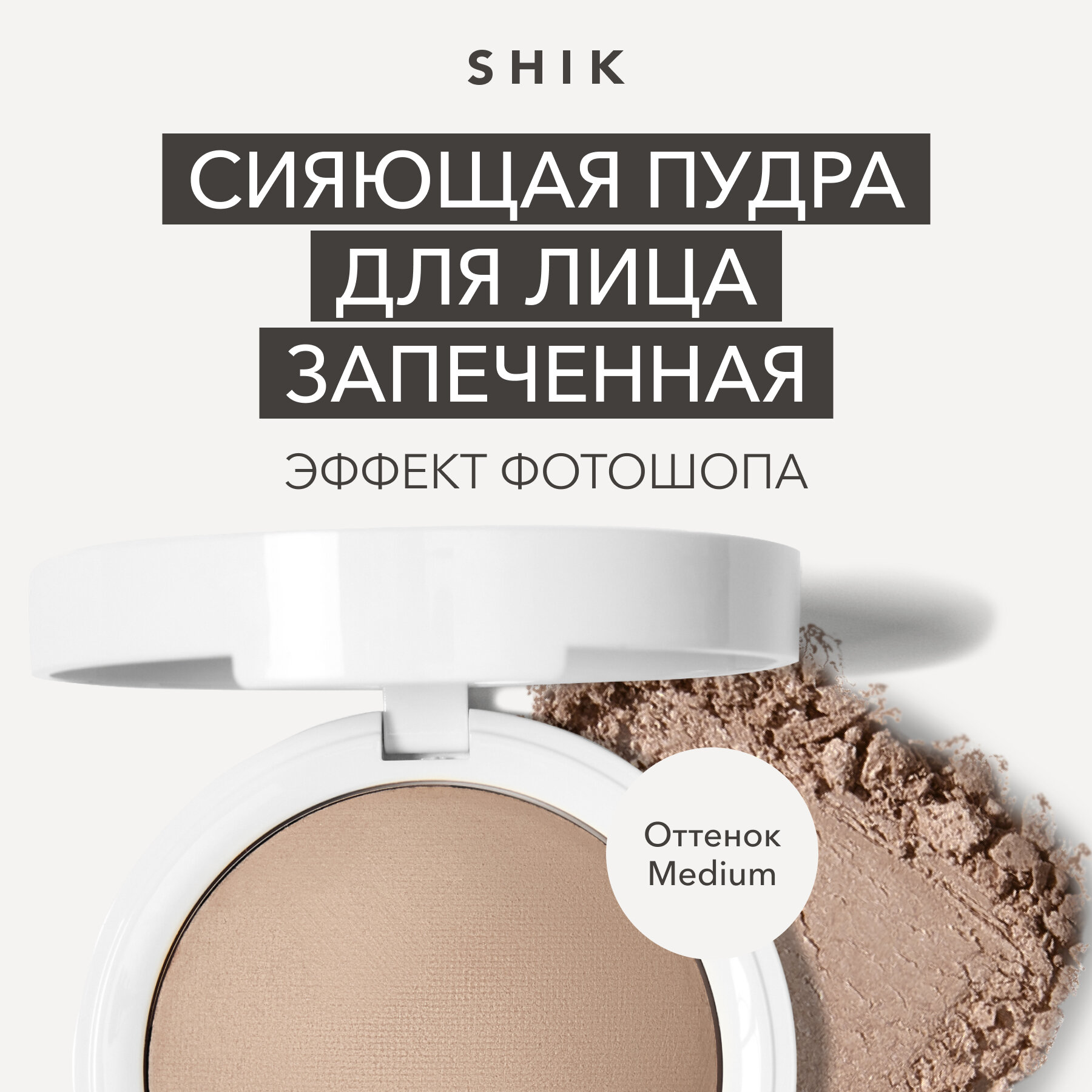 Пудра для лица запеченная сияющая фиксирующая макияж, оттенок Medium нейтральный натуральный для смуглой и загорелой кожи, SHIK GLOW PERFECT POWDER информация: