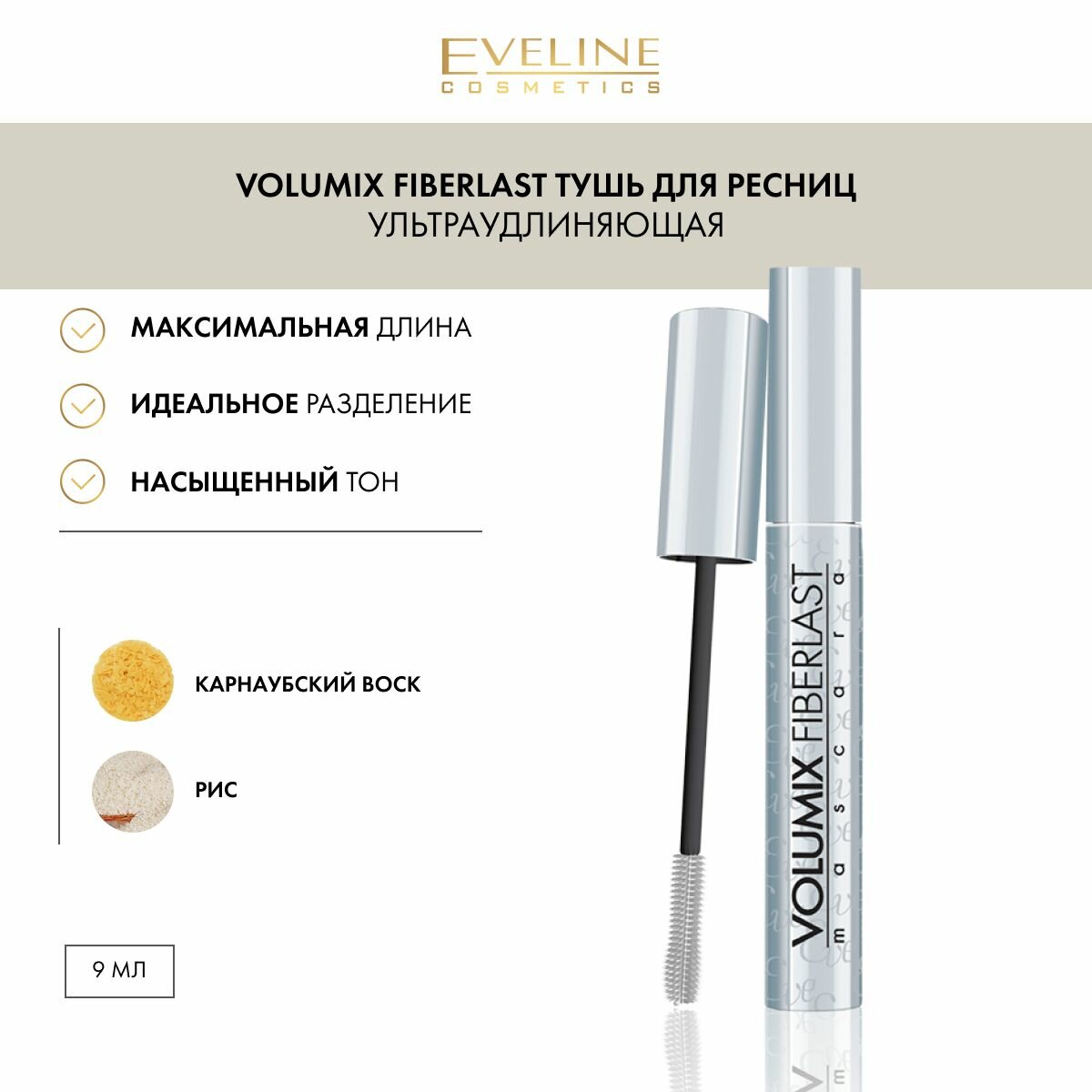 EVELINE Тушь для ресниц VOLUMIX FIBERLAST ультра удлиняющая, черный, 9 мл информация: