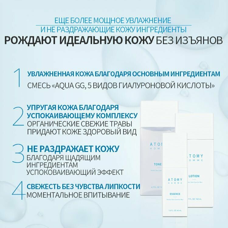 10 цен на Тонер для мужчин Атоми (Увлажнение после бритья) Atomy Homme Toner, 140 мл