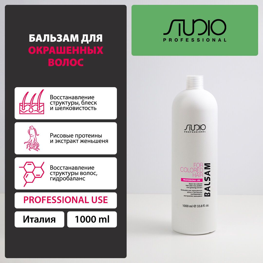 Бальзам для окрашенных волос с рисовыми протеинами и экстрактом женьшеня Kapous Studio Professional, 1000 мл информация: