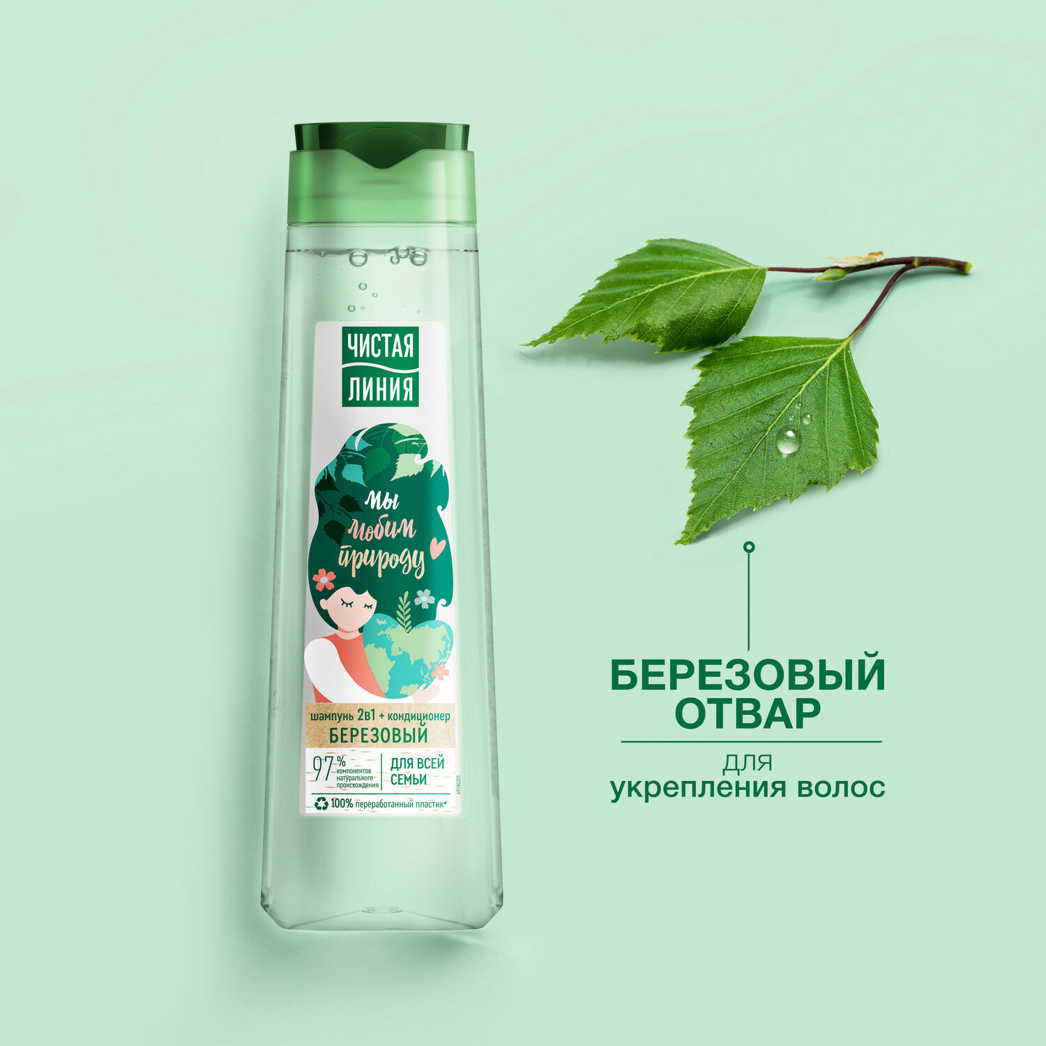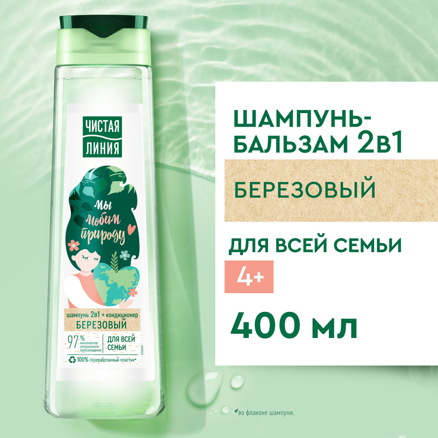 Чистая Линия 2в1 шампунь-бальзам для всей семьи Березовый, увлажняет и смягчает волосы 400 мл
