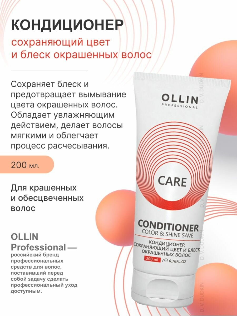 OLLIN Professional набор сохраняющий цвет для окрашенных волос Care Color & Shine Save: шампунь, 250 мл +кондиционер, 200 мл информация: