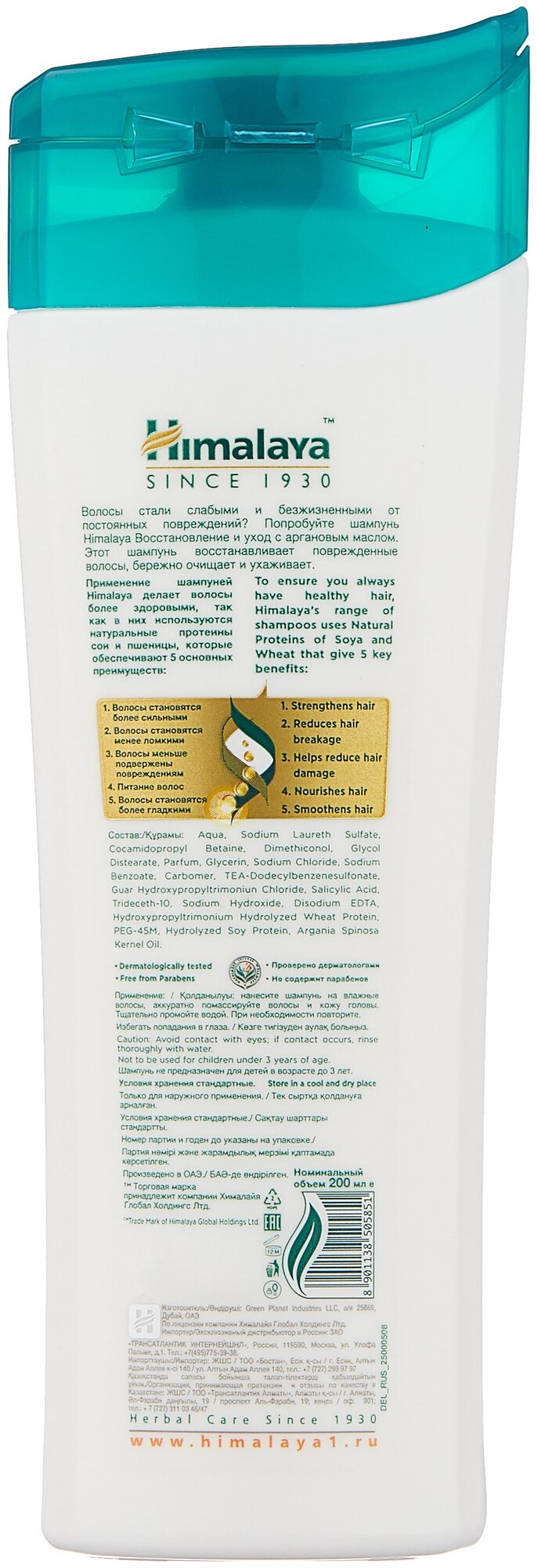 Восстанавливающий шампунь для волос HIMALAYA Since 1930 с Аргановым маслом, 200 мл информация: