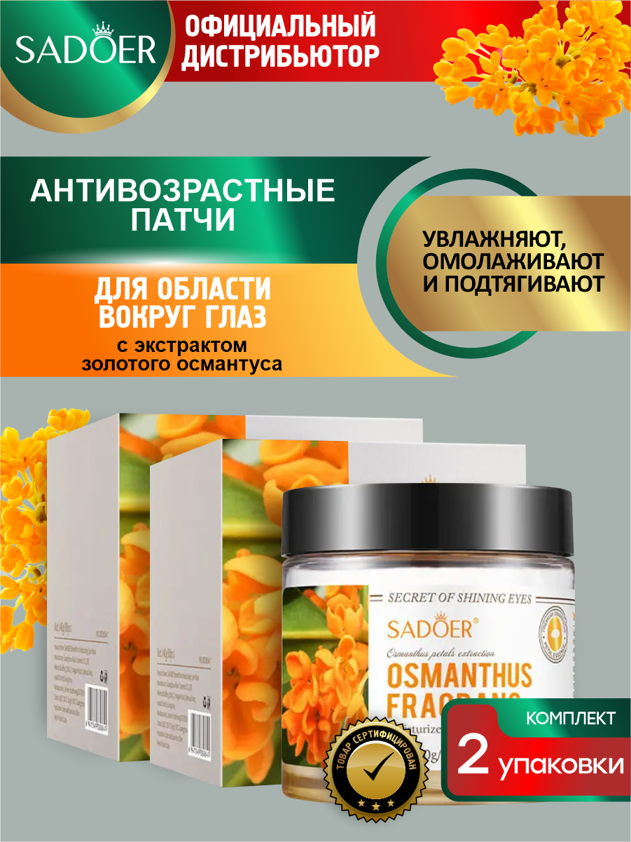 Антивозрастные патчи для кожи вокруг глаз Sadoer с экстрактом золотого османтуса 140 гр х 2 шт информация: