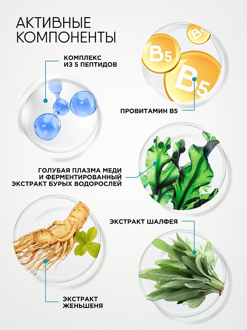 | Дополнительная информация | Комплекс из 5 пептидов, голубая плазма меди и ферментированный экстракт бурых водорослей – супер трио для превосходной гладкости и молодости взгляда, Biome base: ферментированный экстракт японских бурых водорослей укрепляет баланс биома кожи, поддерживает нежную кожу век в период стрессов, тонизирует, Комплекс из 5 пептидов* – проникает в глубокие слои кожи, наполняет ее энергией молодости, предотвращает появление мимических морщин, разглаживает, Голубая плазма меди – восстанавливает мембраны клеток, усиливая их защиту от внешних факторов, придает свежесть и сияние, устраняет следы усталости и стресса. |