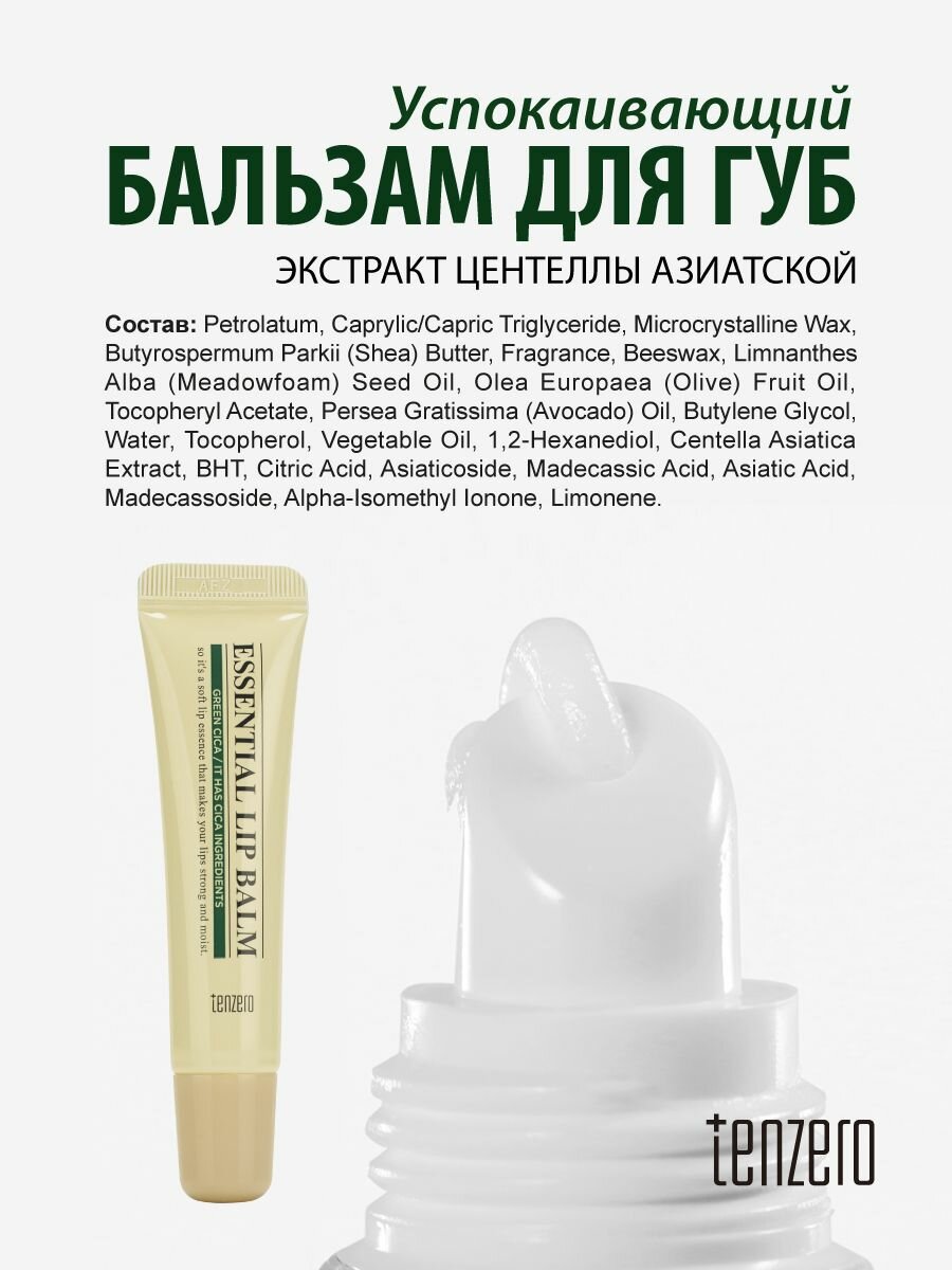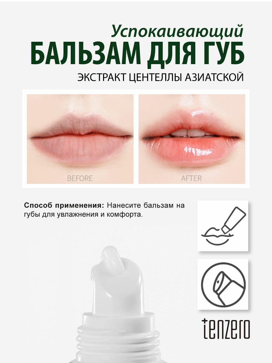 TENZERO Успокаивающий бальзам для губ с экстрактом центеллы азиатской, 9г информация: