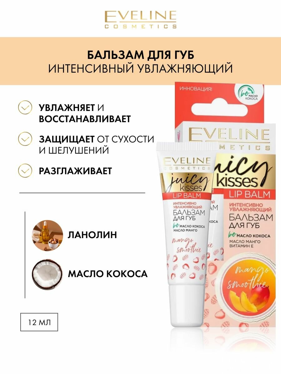 Интенсивный увлажняющий бальзам для губ, Eveline Cosmetics, mango smoothie, juicy kisses, 12 мл
