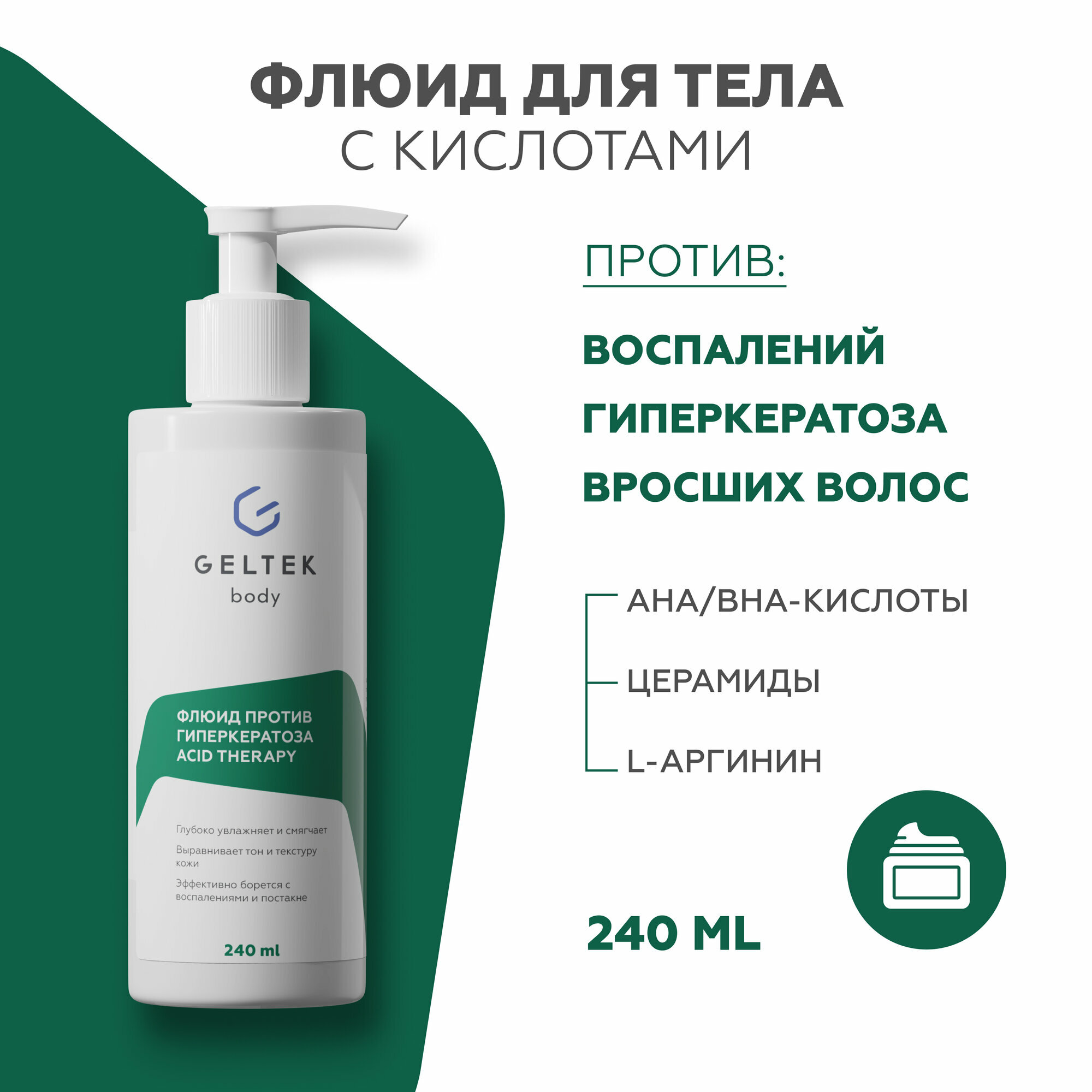 10 цен на Гельтек Флюид крем против гиперкератоза для тела Acid Therapy, против вросших волос, 240 мл