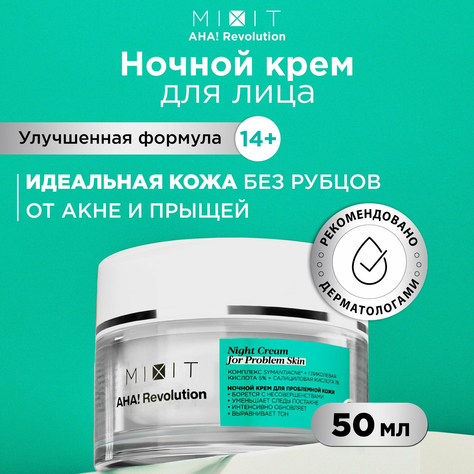 10 цен на MIXIT Крем для лица ночной увлажняющий с гликолевой кислотой против прыщей, акне, следов постакне AHA! REVOLUTION, 50 мл