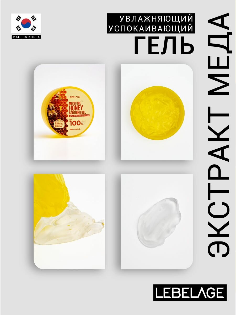 LEBELAGE Успокаивающий гель для лица и тела увлажняющий с медом, 300 мл Корея Moisture Honey Purity 100% Soothing Gel, 300ml уходовая корейская косметика после загара, после бритья информация: