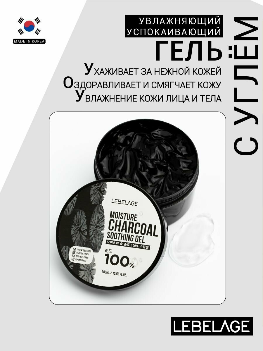 10 цен на LEBELAGE Увлажняющий успокаивающий гель с углем для ухода за кожей лица и тела, корейская косметика. 300мл