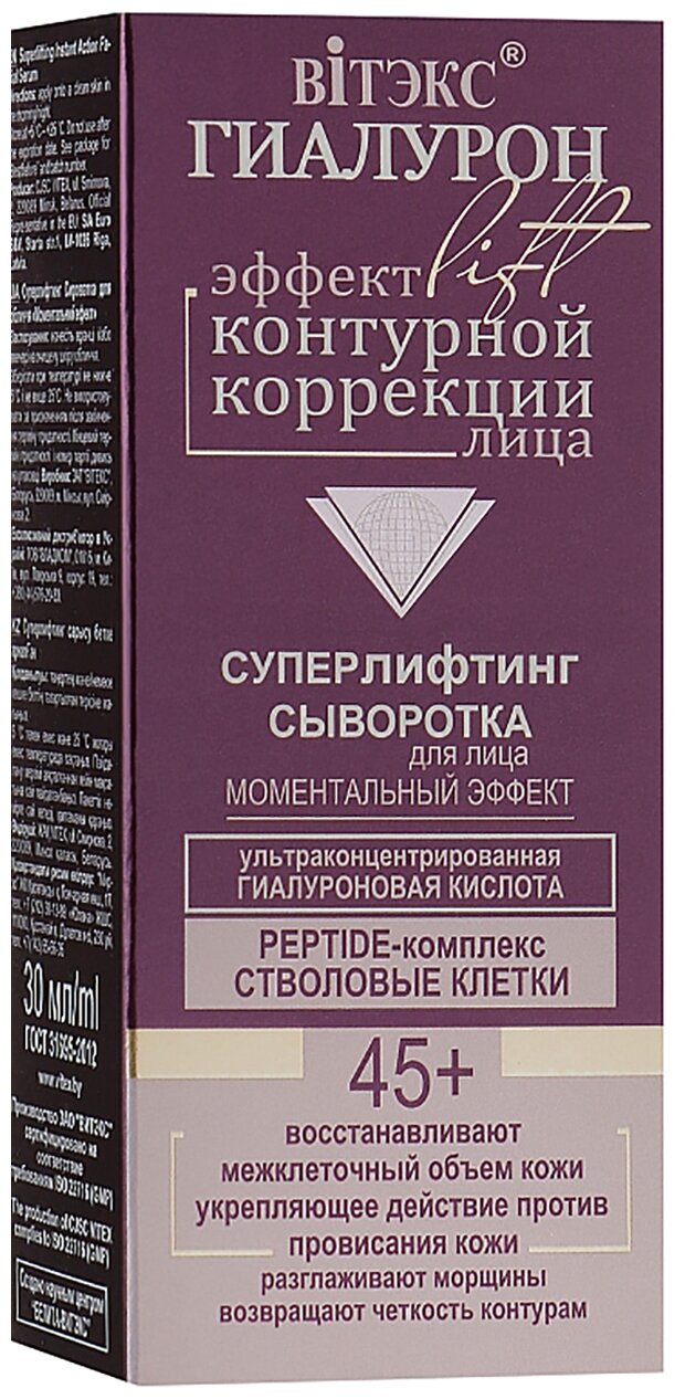 Витэкс Суперлифтинг 45+ Сыворотка для лица Моментальный эффект гиалурон LIFT 30 мл. информация: