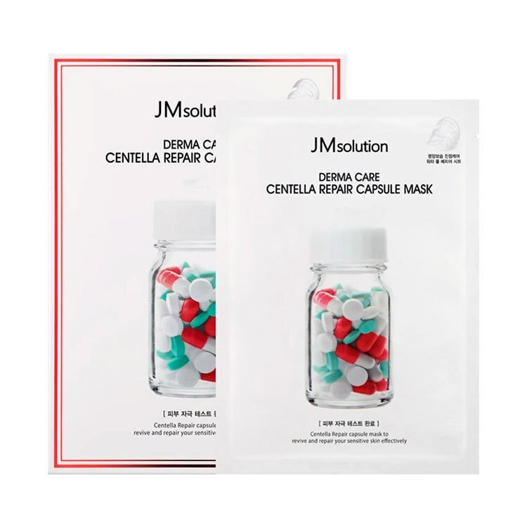 10 цен на JM Solution маска для лица с центеллой увлажняющая, от воспалений /DERMA CARE CENTELLA REPAIR CAPSULE MASK CLEAR, 3шт. * 30мл.