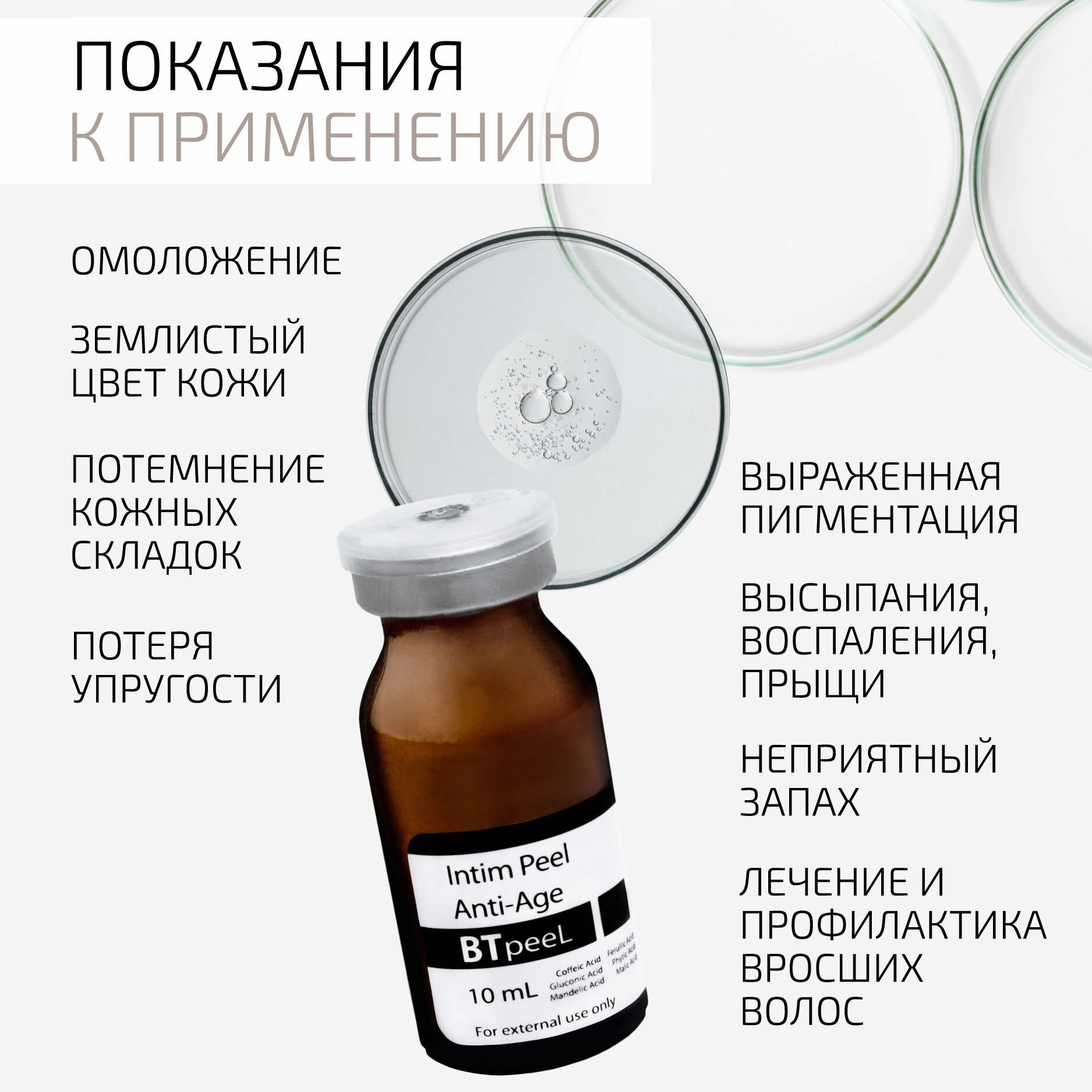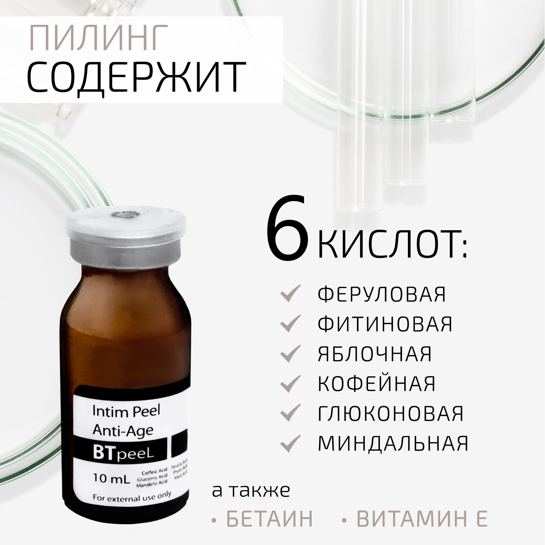 10 цен на Интимный пилинг омолаживающий с феруловой, фитиновой, кофейной и глюконовой кислотой Intim Peel Anti-Age BTpeeL, 10 мл