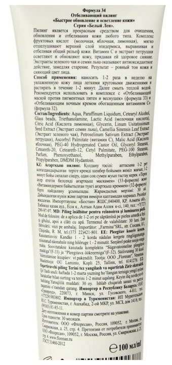10 цен на Отбеливающий скраб Floresan, "Белый Лен", быстрое обновление и осветление кожи, 100 мл