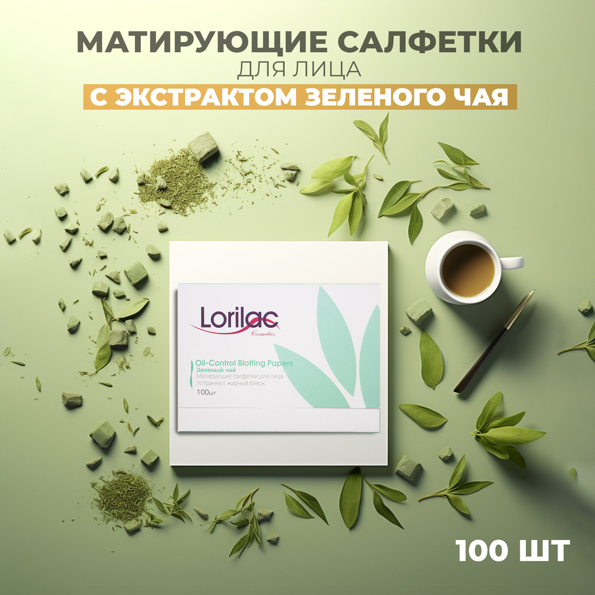 Матирующие салфетки для лица для жирной кожи Корея LORILAC Зеленый чай 100 шт. / Cалфетки косметические от жирного блеска на лице бумажные одноразовые информация: