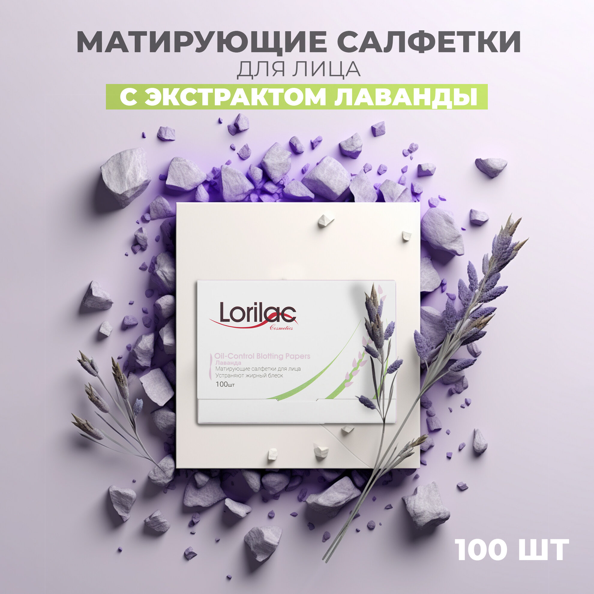 Матирующие салфетки для лица для жирной кожи Корея LORILAC Лаванда 100 шт. / Cалфетки косметические от жирного блеска на лице бумажные одноразовые информация: