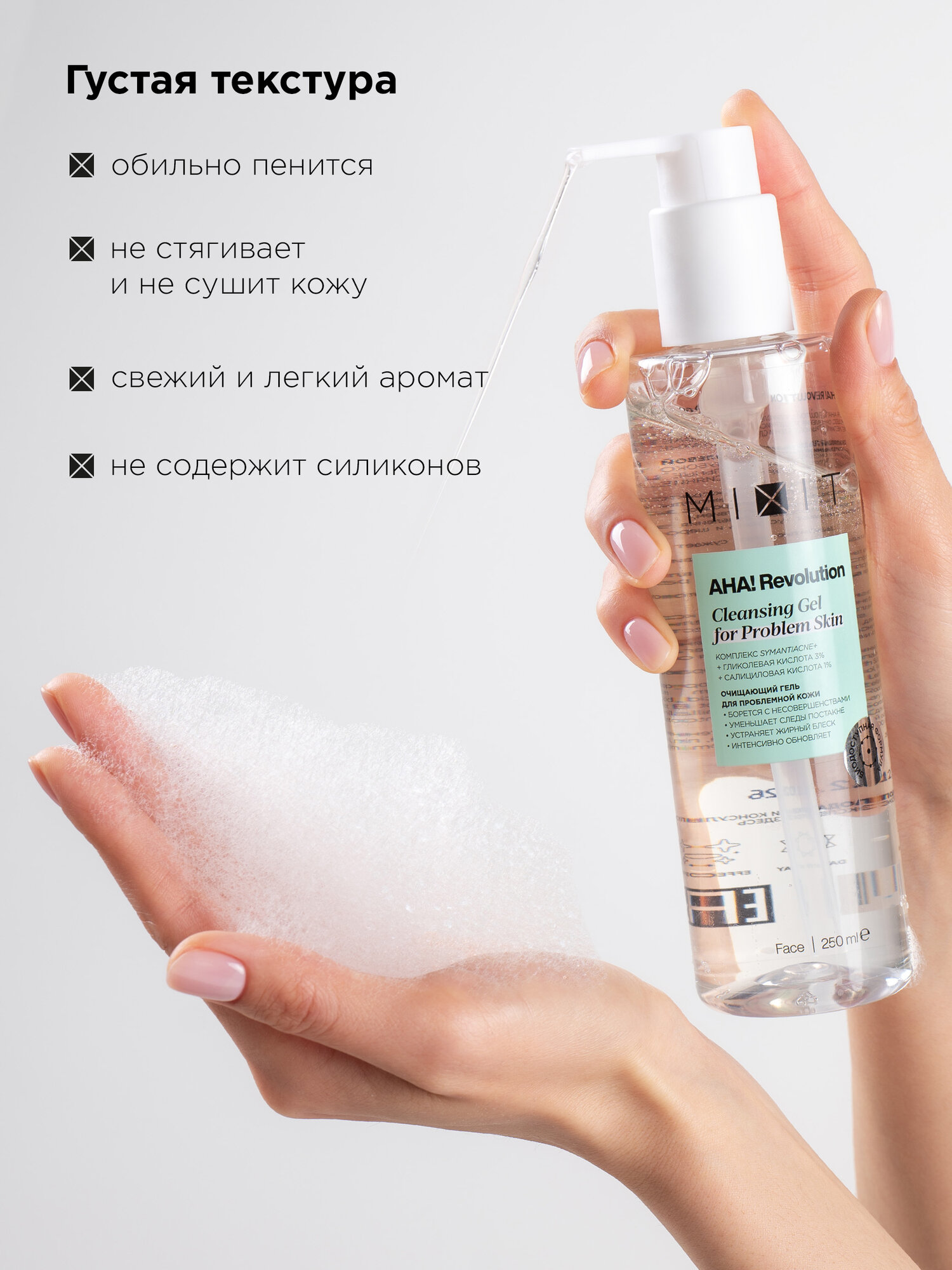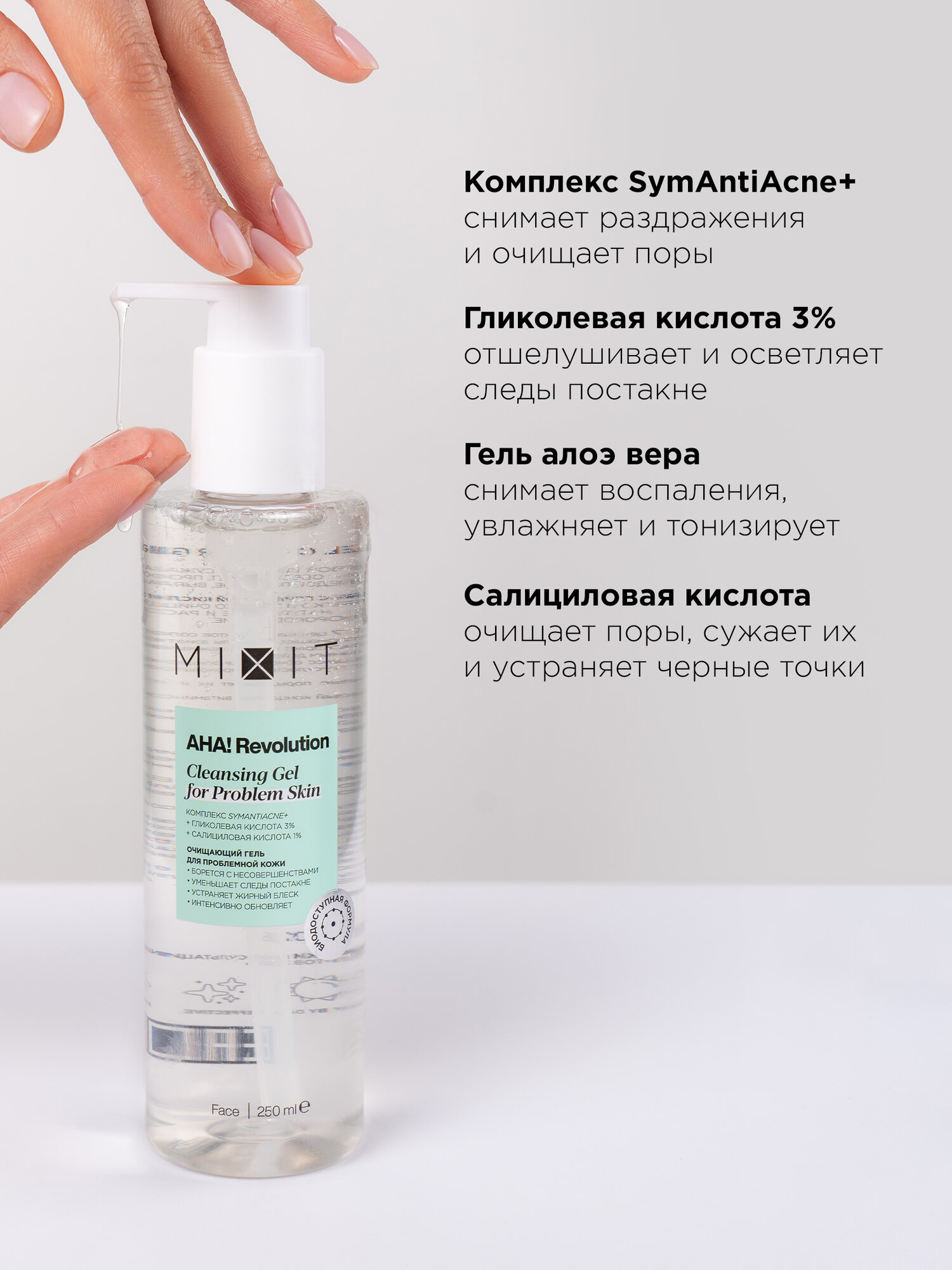 Гель для умывания MIXIT AHA! REVOLUTION с 3% гликолевой кислотой и 1% салициловой кислотой (для проблемной кожи) 150 мл