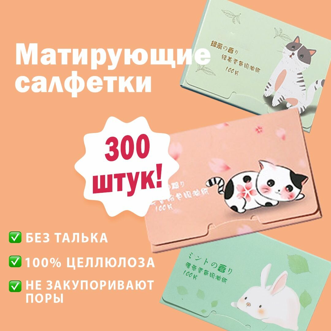 Матирующие косметические салфетки HOLI OLI для лица от жирного блеска 300 штук 275 ₽