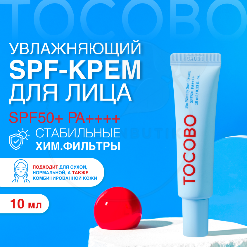 10 цен на Крем солнцезащитный с увлажняющим эффектом | Tocobo Bio Watery Sun Cream SPF50+ PA++++ 10мл