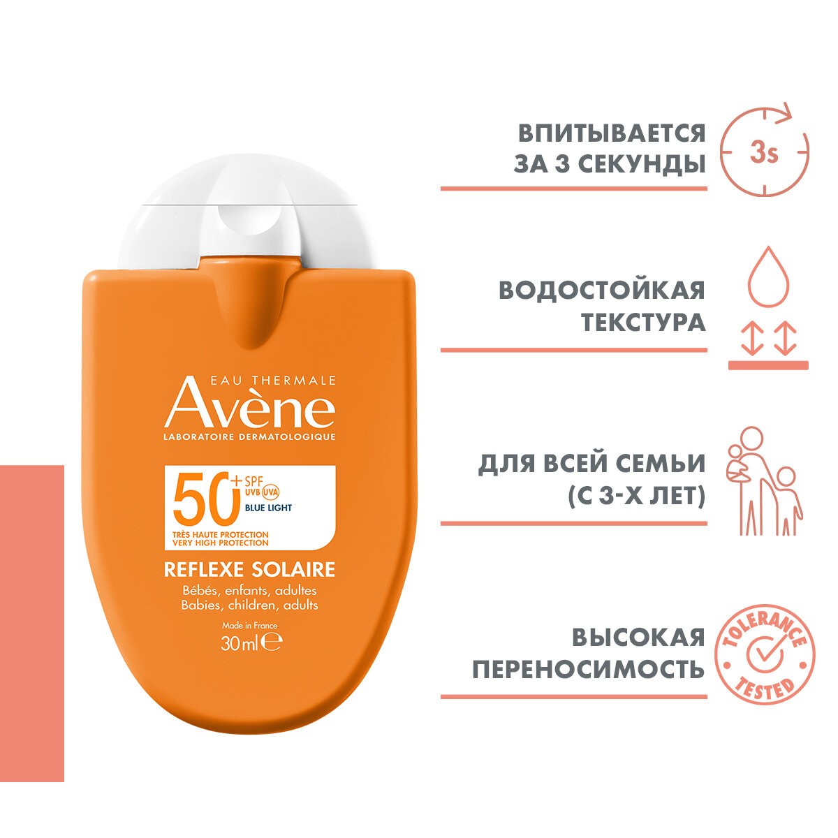 AVENE Avene Солнцезащитная компакт-эмульсия для лица для всей семьи SPF 50+, 30 мл