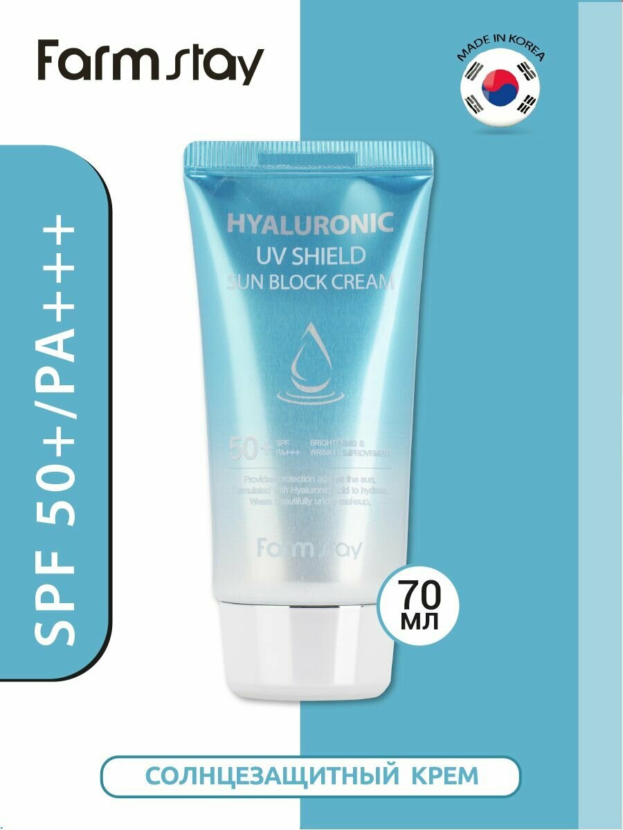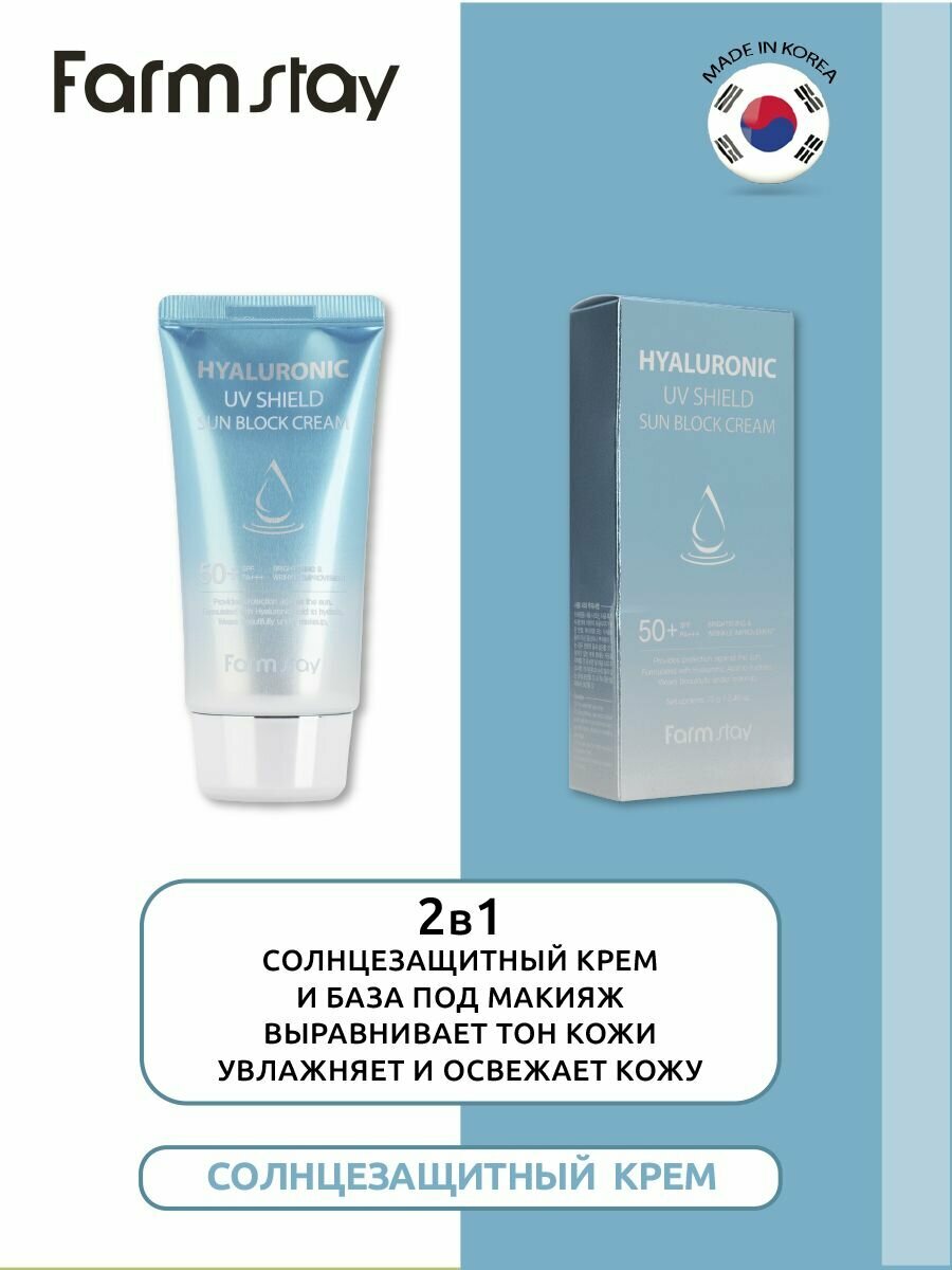 10 цен на FarmStay Солнцезащитный крем для ухода за кожей лица, шеи и зоны декольте с гиалуроновой кислотой SPF50+/PA+++, корейская косметика. 70г
