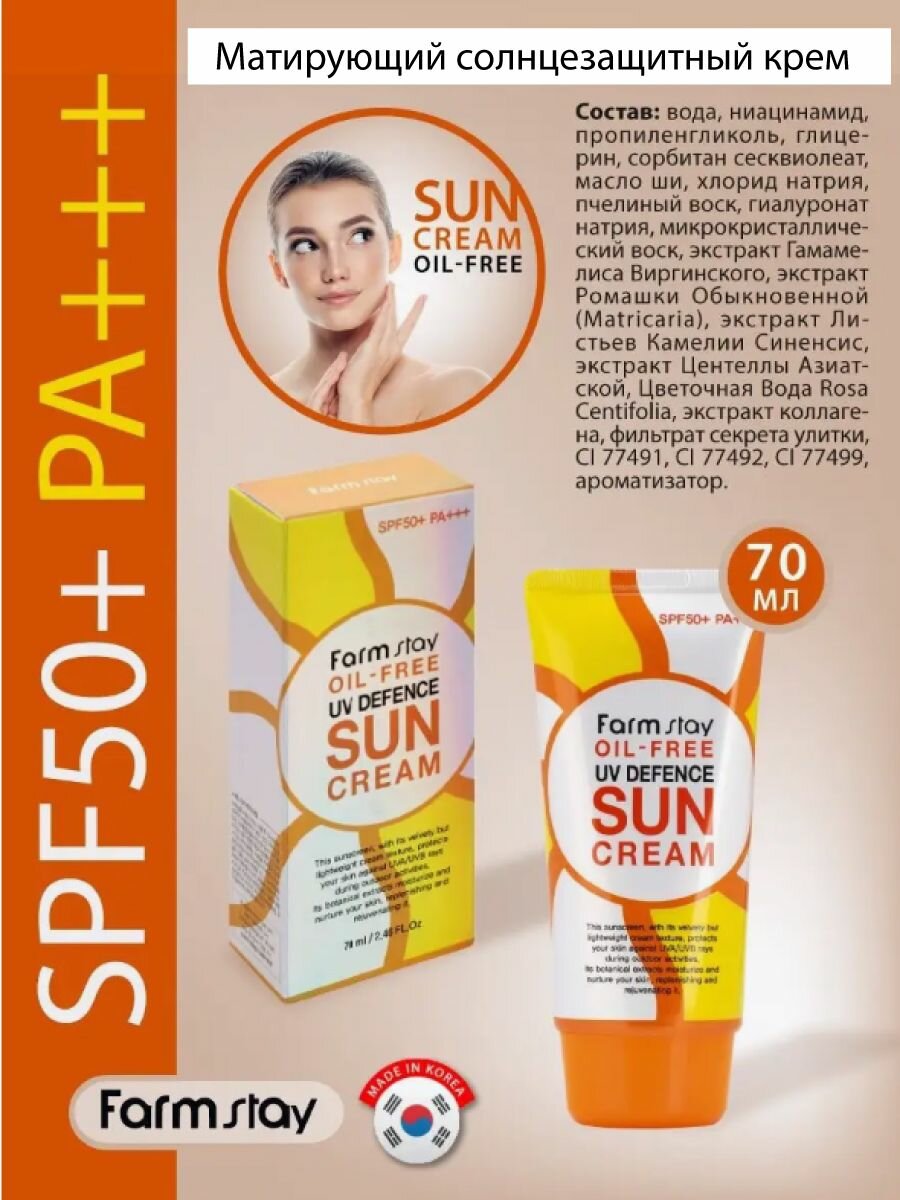 FarmStay Солнцезащитный крем для лица без содержания масел SPF50+ PA+++, корейская косметика. 70мл информация: