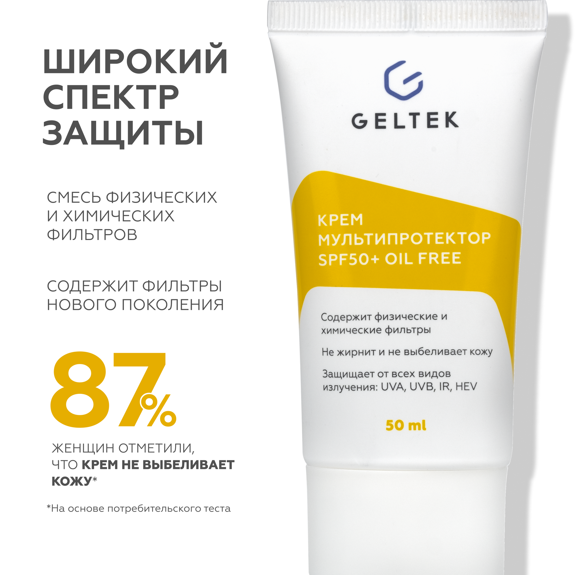 10 цен на Гельтек Крем солнцезащитный для лица SPF 50 + Мультипротектор oil free, 50 мл