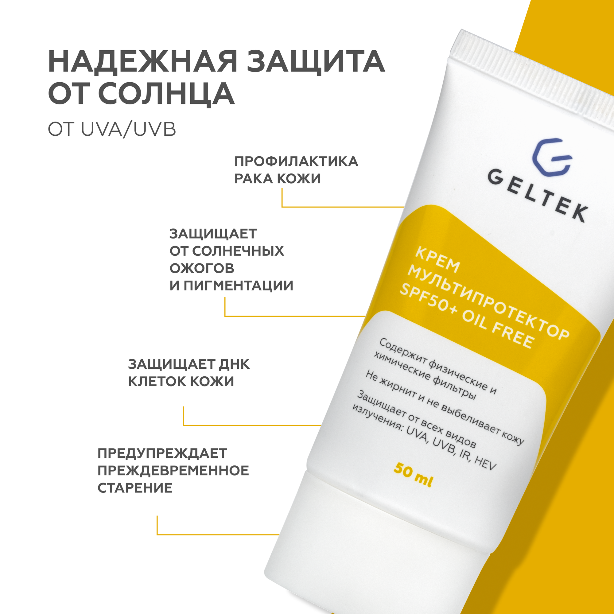 Гельтек Крем солнцезащитный для лица SPF 50 + Мультипротектор oil free, 50 мл информация: