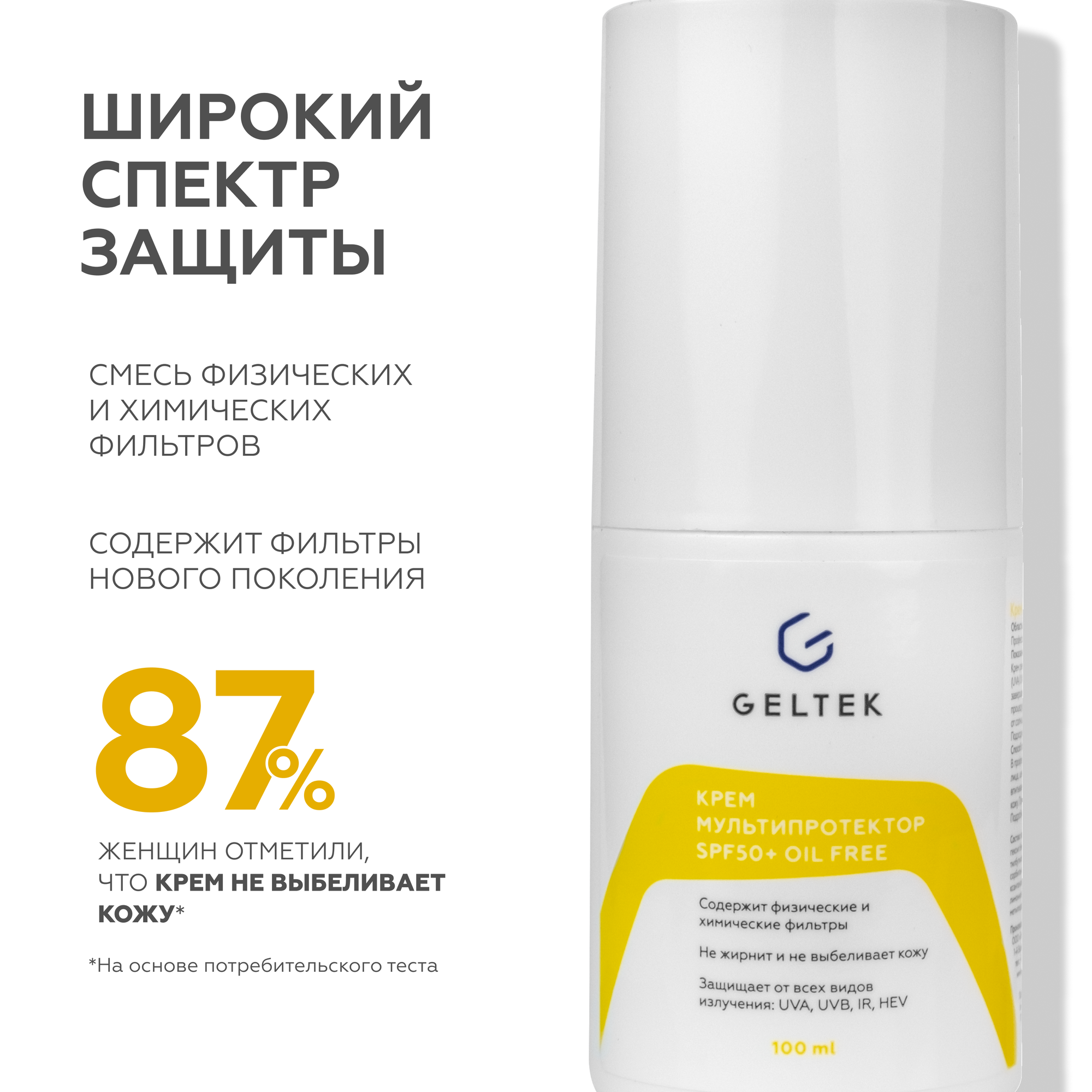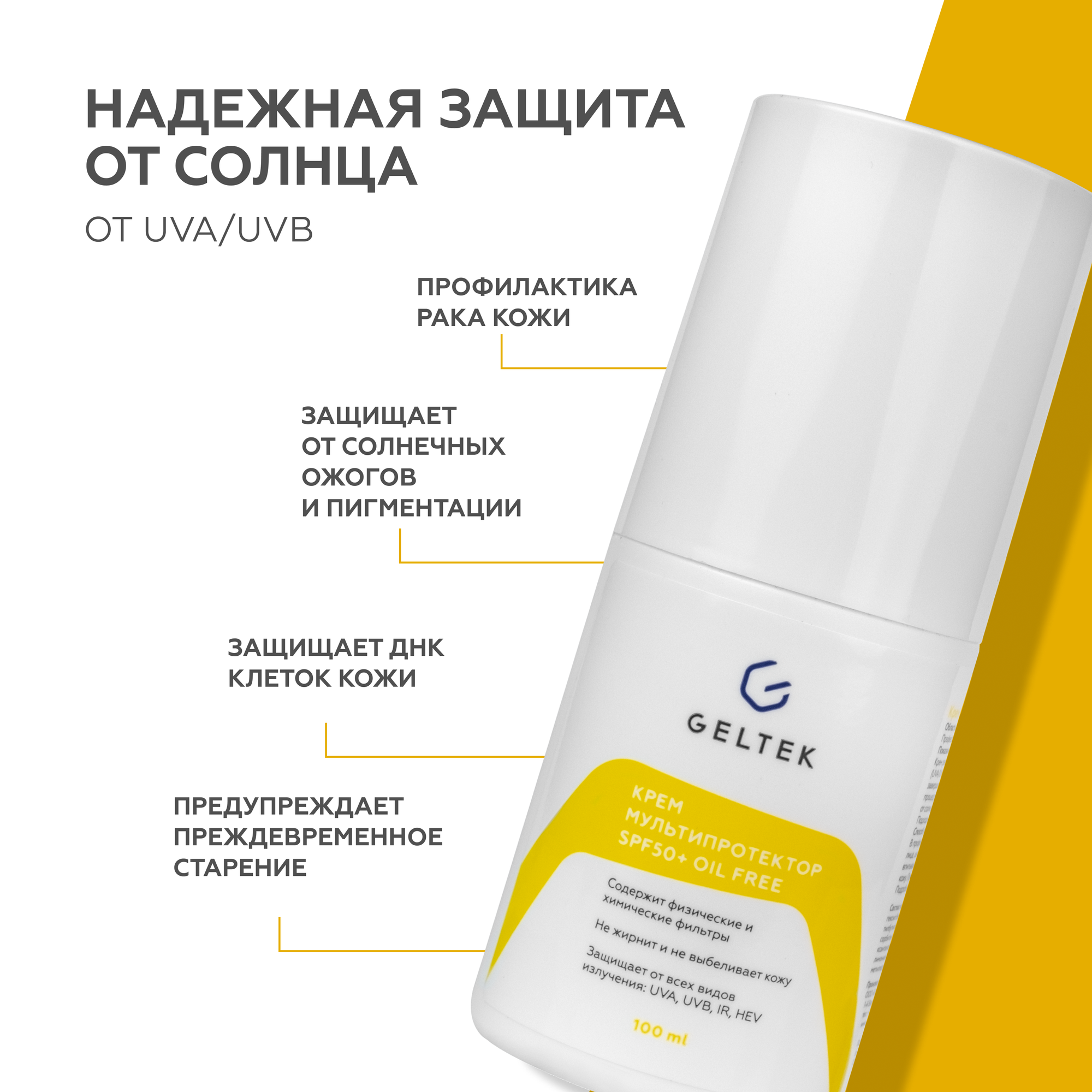 Гельтек Крем солнцезащитный для лица SPF 50 + Мультипротектор oil free, 100 мл информация: