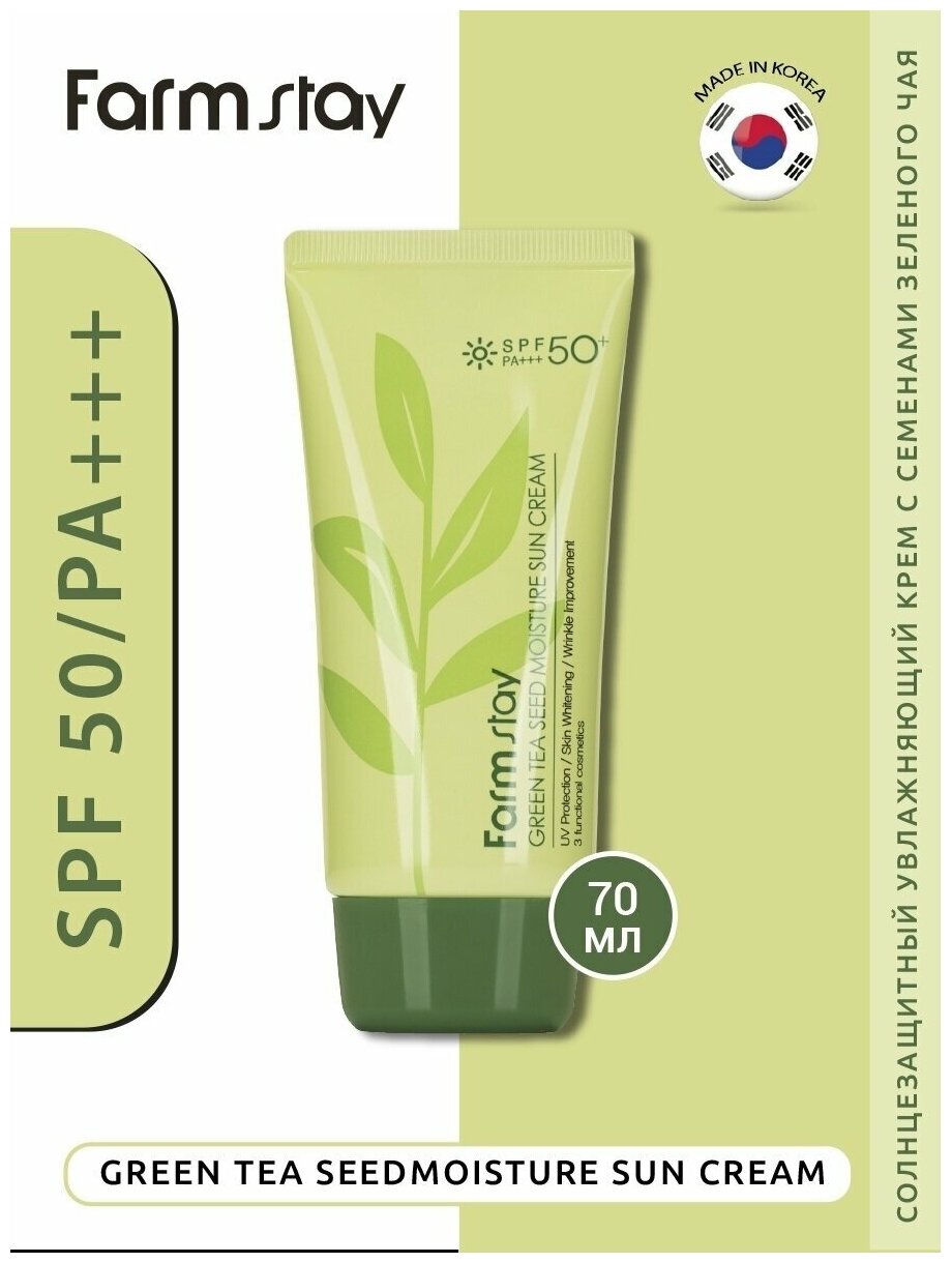 Увлажняющий солнцезащитный крем Farmstay с семенами зеленого чая SPF 50/PA+++, 70 г информация: