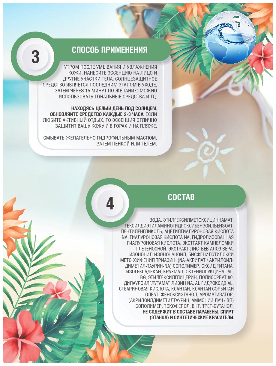 | Состав | Вода, этилгексилметоксициннамат, гексилдиэтиламиногидроксибензоилбензоат, пентиленгликоль, ацетилгиалуроновая кислота Na, гиалуроновая кислота Na, гидролизованная гиалуроновая кислота, экстракт камнеломки, экстракт листьев алоэ вера, экстракт маточного молочка, изонан, изонониловая кислота, бисэтилгексилоксифенол метоксифенилтриазин, (акрилат натрия / акрилоилдиметилтаурин натрия) сополимер, оксид титана, изогексадекан, октенилсукцинат крахмала Al, BG, этилгексилглицерин, полисорбат 80, лизин, дилауроилглутамат натрия, гидроксид Al, стеариновая кислота, ксантановая камедь, сорбитанолеат, феноксиэтанол, отдушка (акрилоилдиметилтаурин). сополимер аммония/ВП), токоферол, БГТ, трет-бутанол |