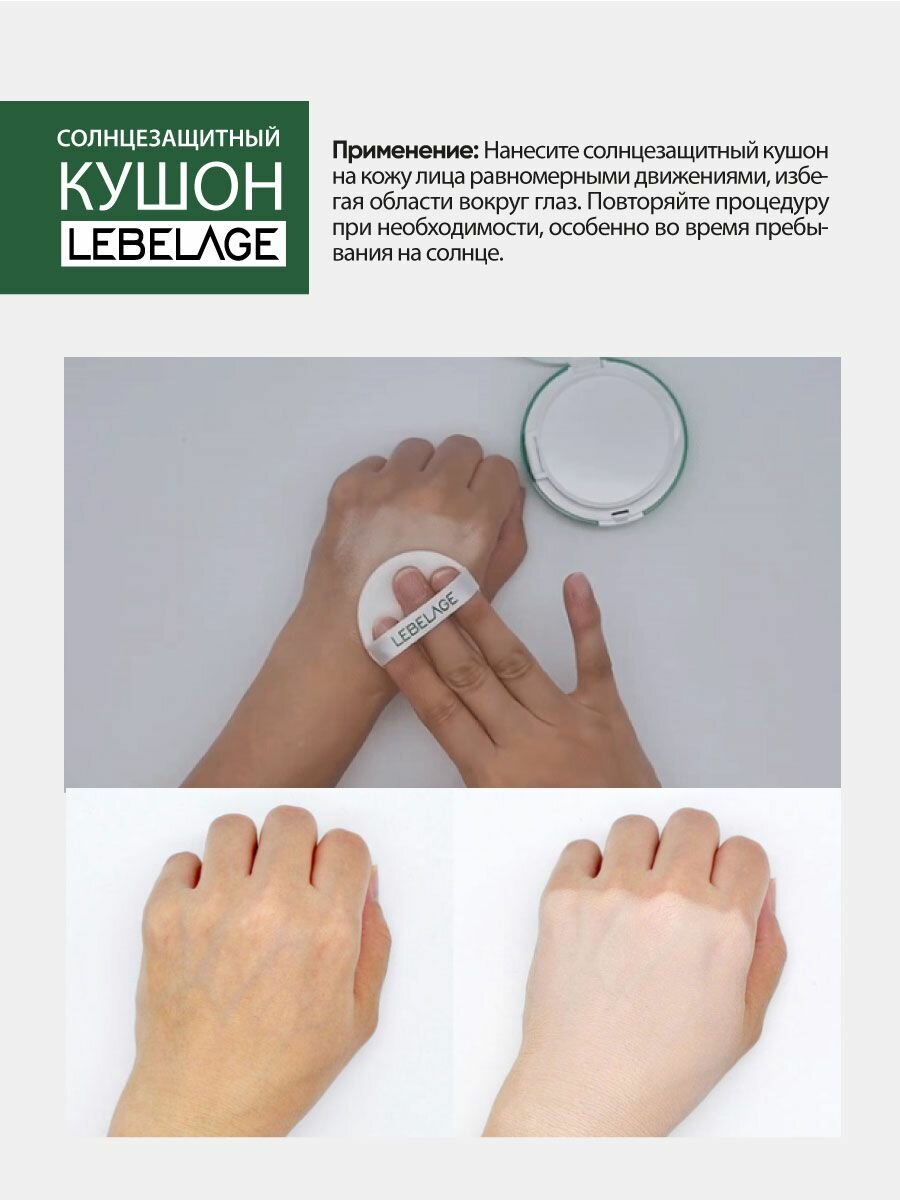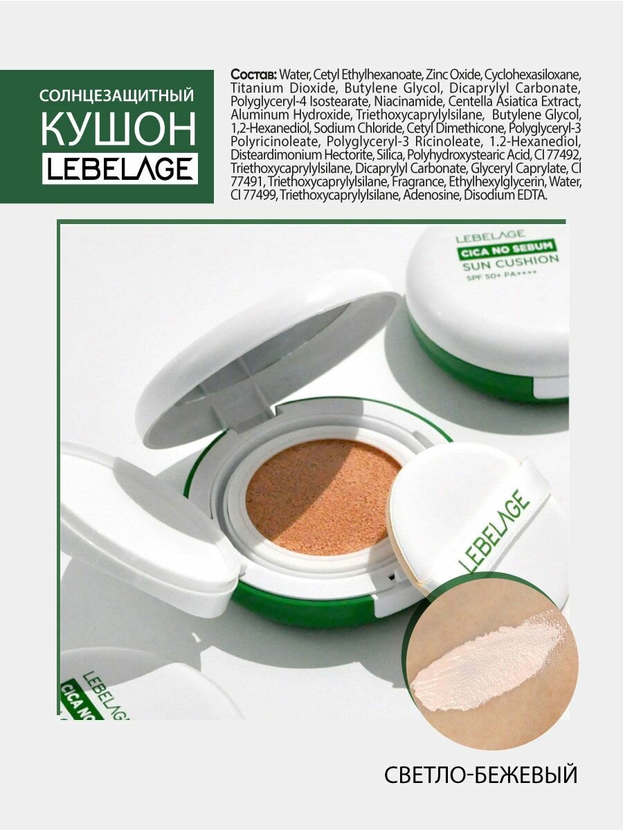 10 цен на LEBELAGE Солнцезащитный тональный кушон для лица светло-бежевый SPF50+/PA+++, 15г, Корея. Лебелейдж уходовая декоративная корейская косметика для макияжа