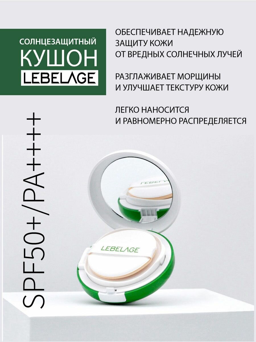 LEBELAGE Солнцезащитный тональный кушон для лица светло-бежевый SPF50+/PA+++, 15г, Корея. Лебелейдж уходовая декоративная корейская косметика для макияжа информация: