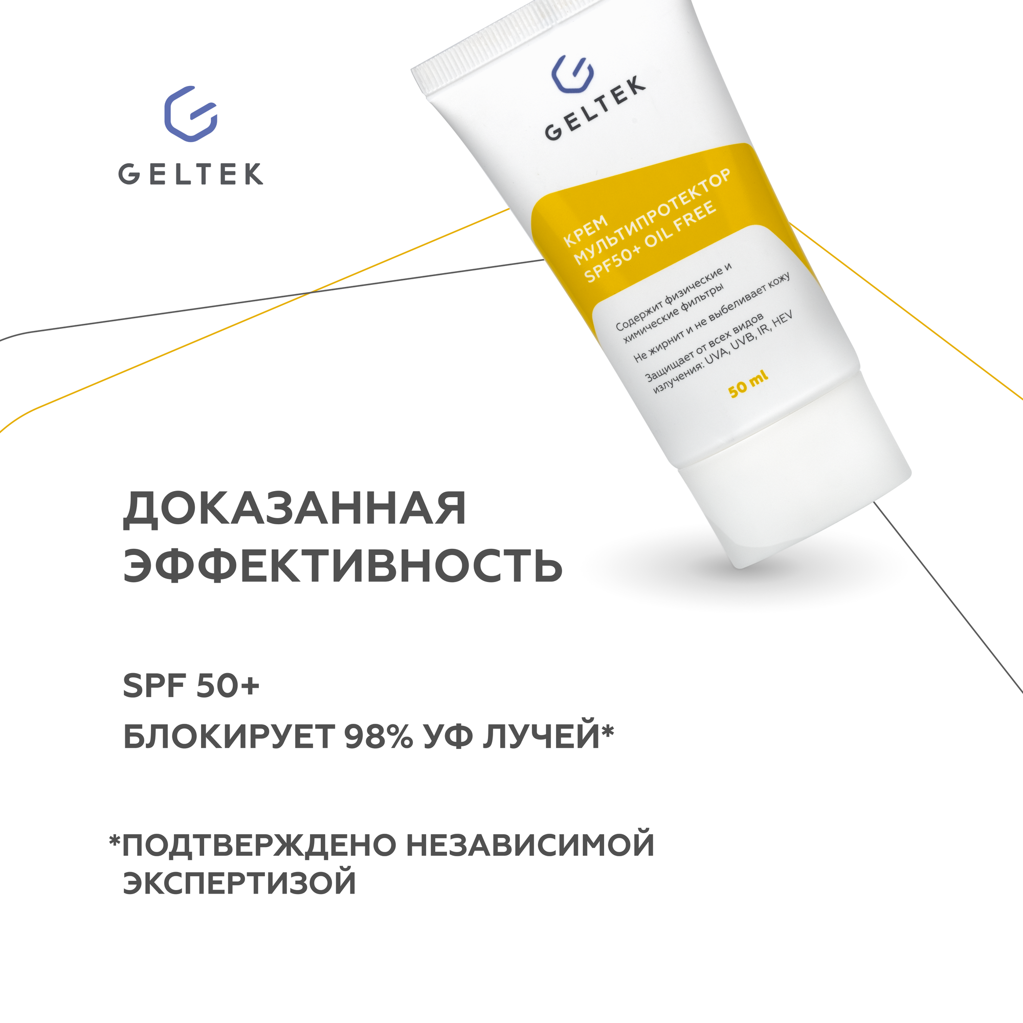 Гельтек Крем солнцезащитный для лица SPF 50 + Мультипротектор oil free, 50 мл + миниатюра информация: