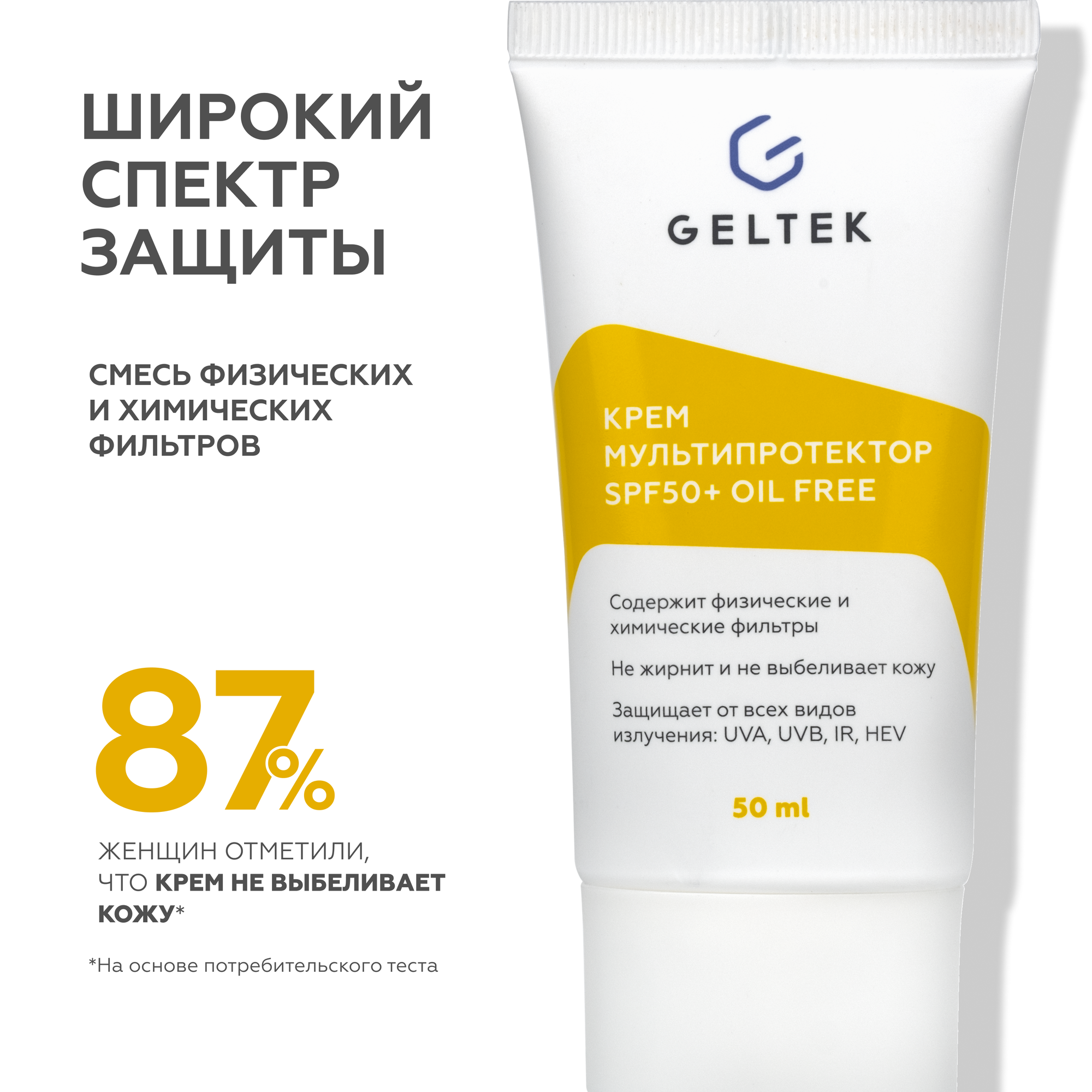10 цен на Гельтек Крем солнцезащитный для лица SPF 50 + Мультипротектор oil free, 50 мл + миниатюра