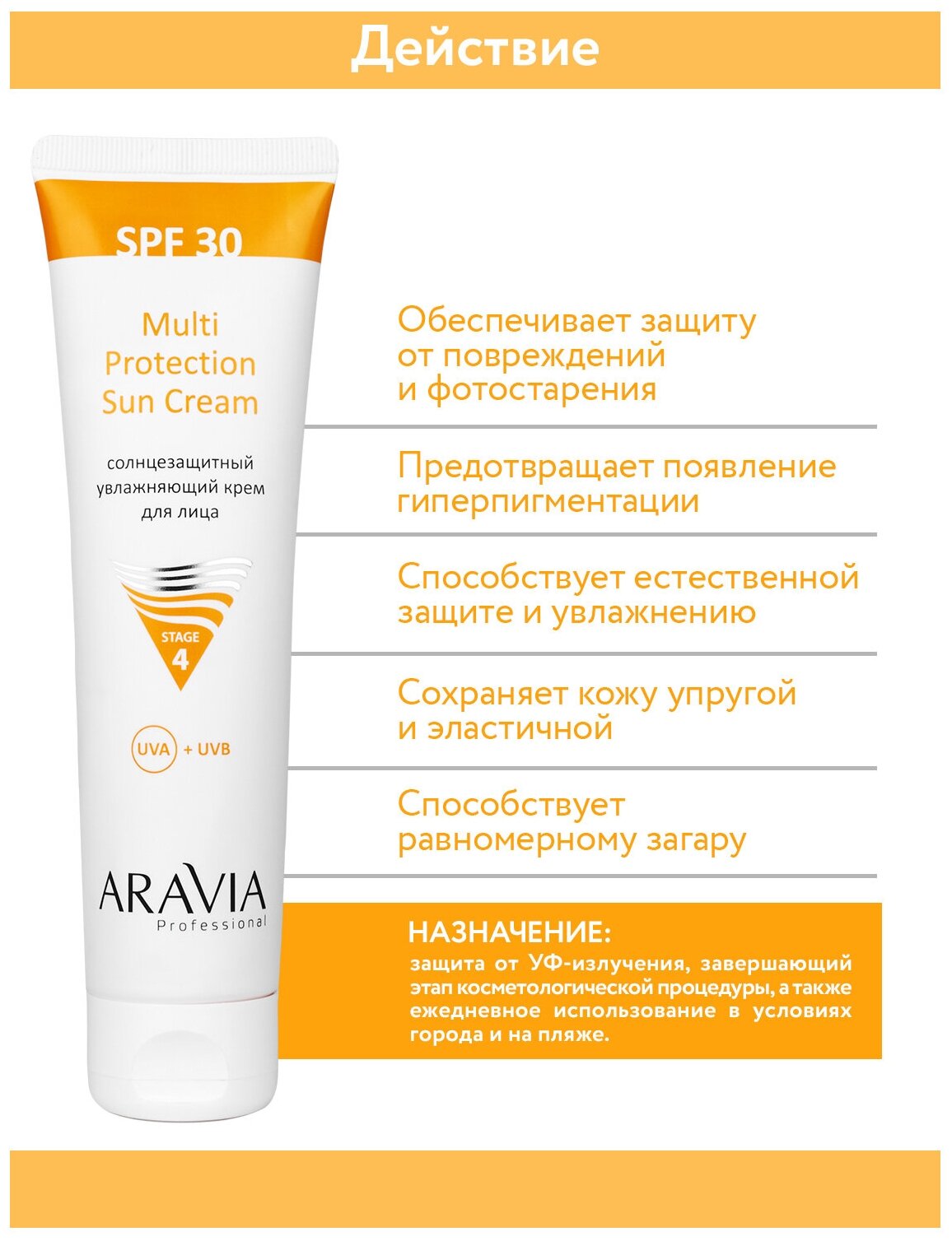 ARAVIA Солнцезащитный увлажняющий крем для лица Multi Protection Sun Cream SPF 30, 100 мл информация: