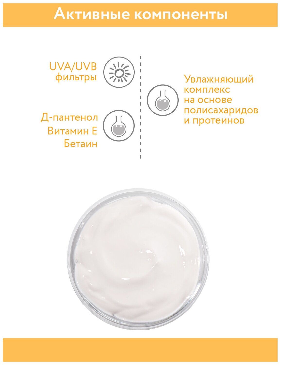 | Состав | вода, косметическая основа, UVA/UVB фильтры, увлажняющий комплекс на основе полисахаридов и протеинов, д-пантенол, витамин Е, бетаин. |