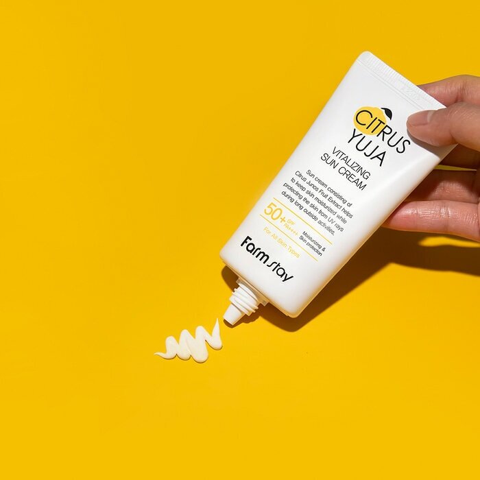 Отзывы на FarmStay Солнцезащитный крем для лица с экстрактом юдзу, 70, Корея. Citrus Yuja Vitalizing Sun Cream, уходовая корейская косметика от загара