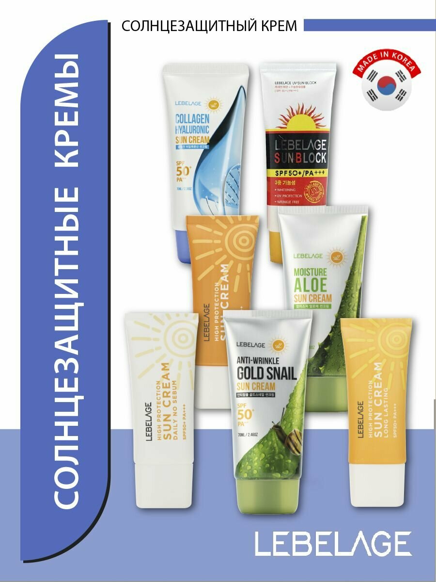 10 цен на LEBELAGE Солнцезащитный крем для ухода за кожей лица, шеи и зоны декольте, против морщин с коллагеном и гиалуроновой кислотой, корейская косметика. 70мл