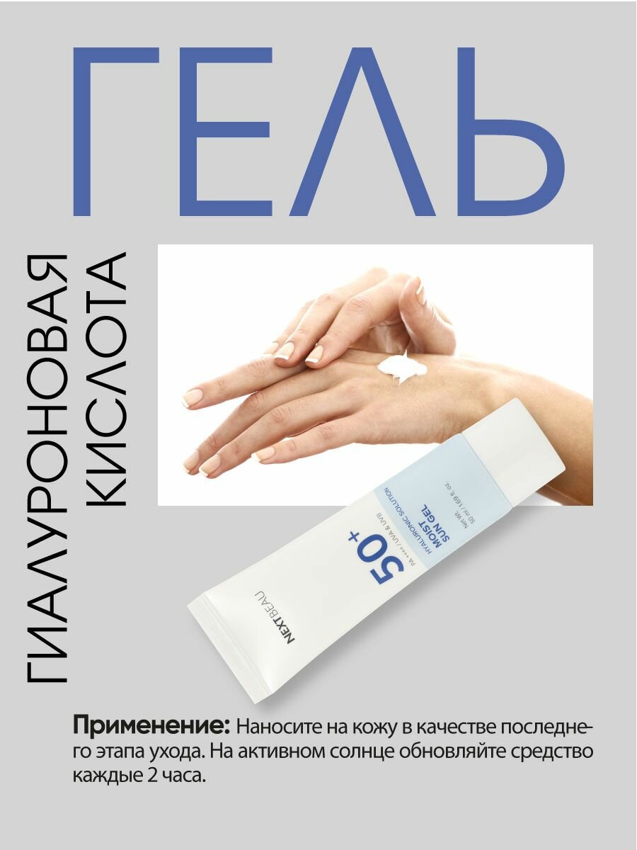 NEXTBEAU Увлажняющий солнцезащитный гель с гиалуроновой кислотой SPF 50+/PA+, 50мл информация: